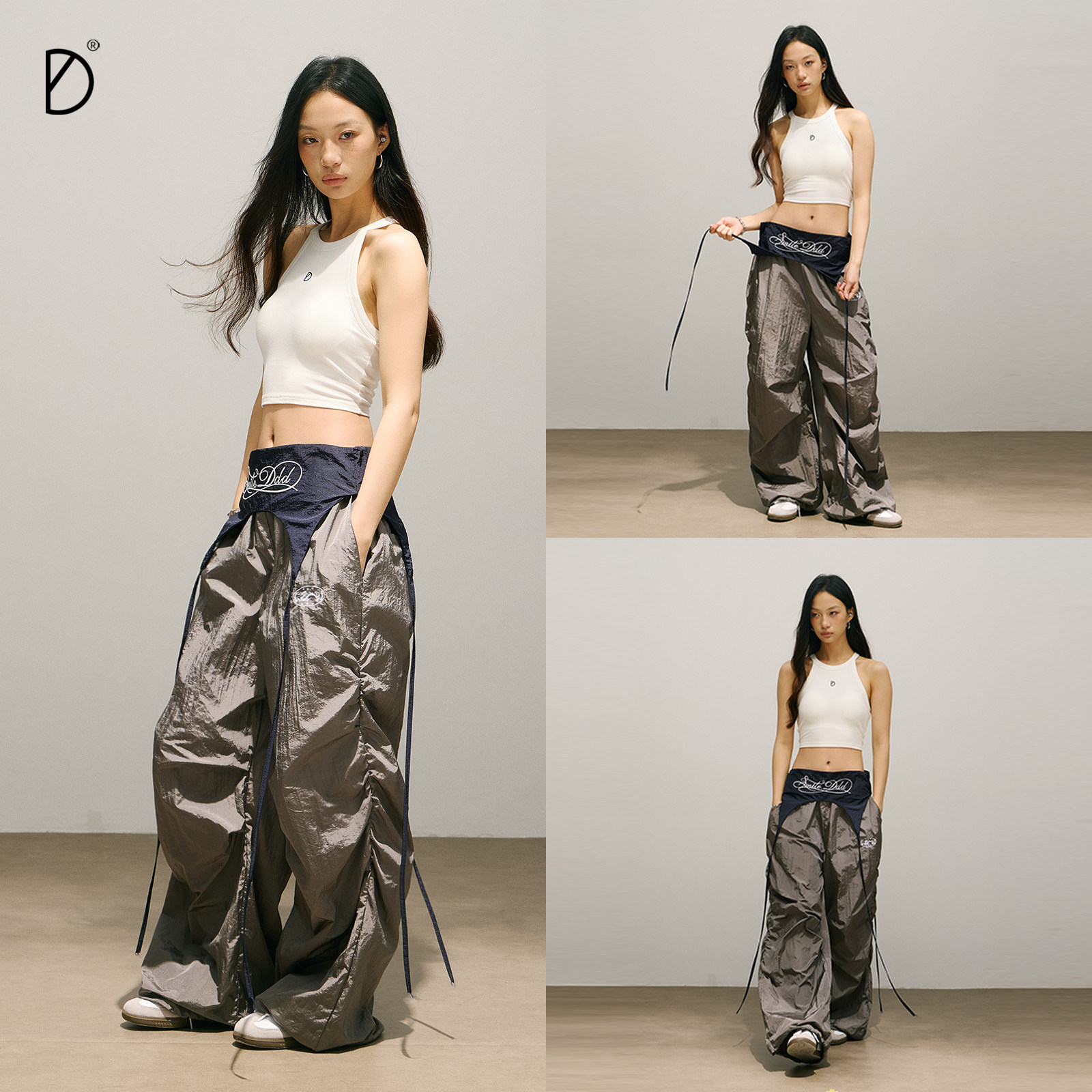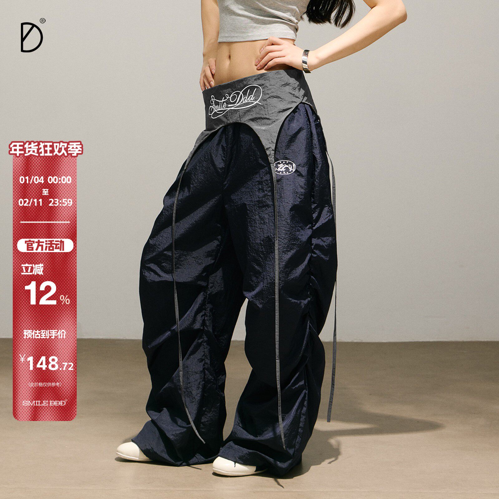 📚 SMILE DDD褶皱纸袋裤140g轻薄透气裤脚可调节美式街头休闲运动裤