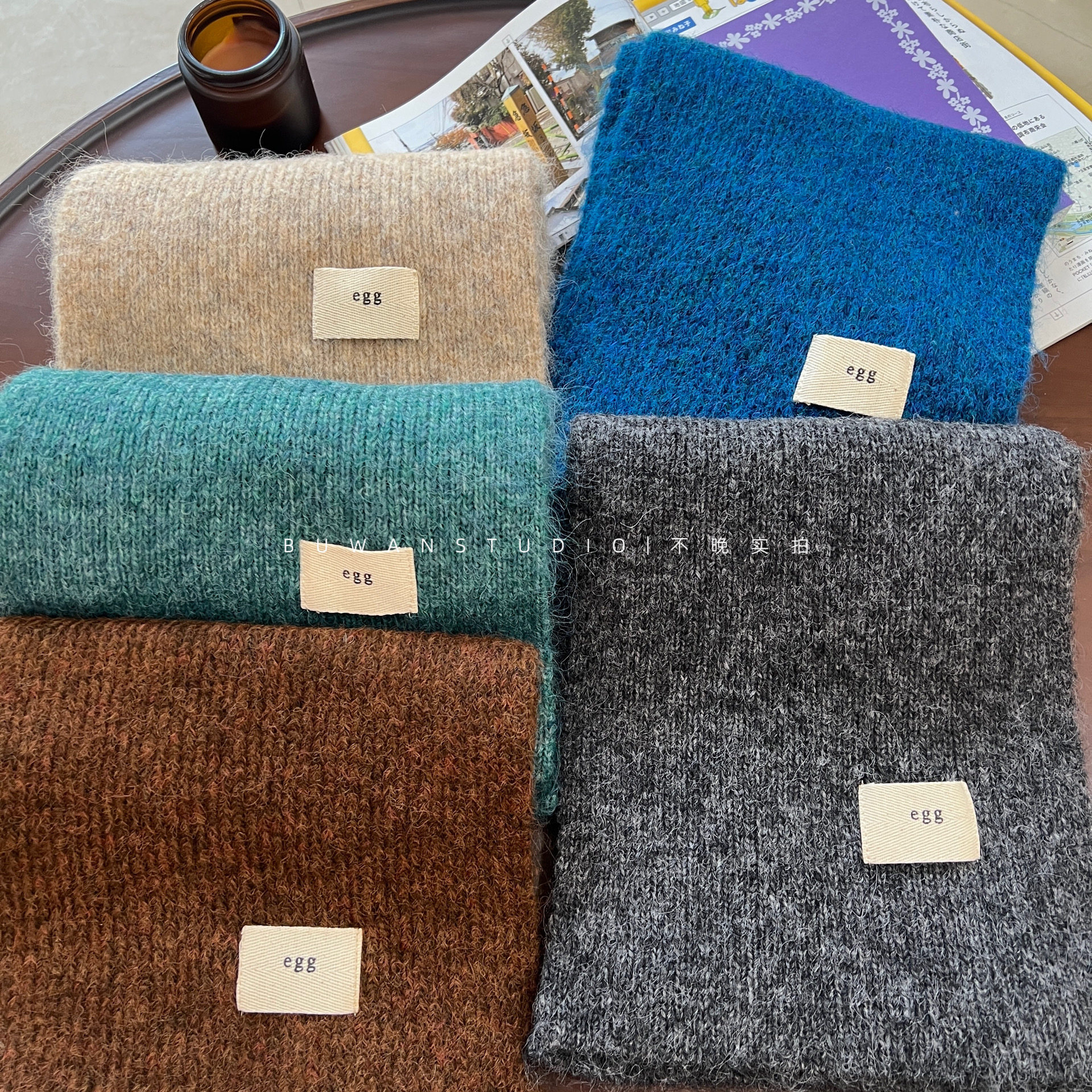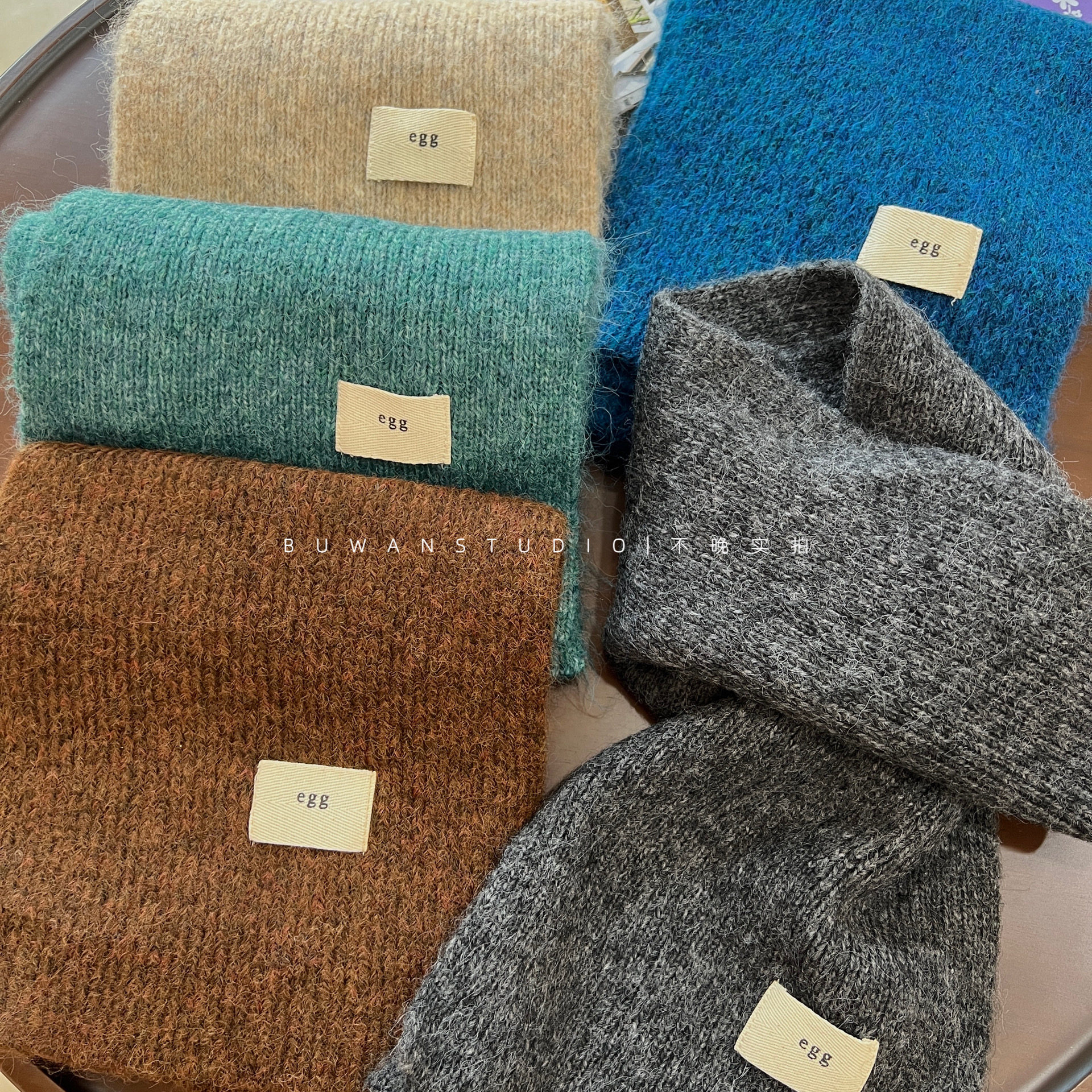 📚 韩系氛围感|博主同款egg羊毛混纺纯色显白秋冬针织围巾保暖加厚