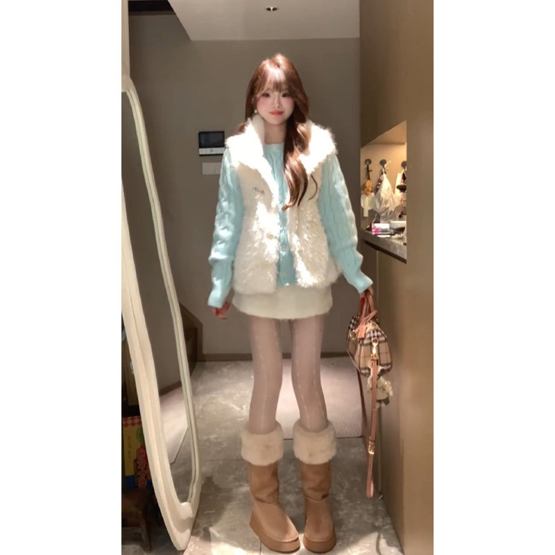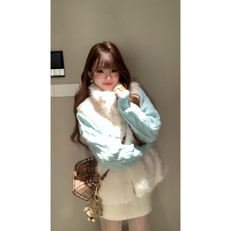 📚 设计感氛围感毛茸茸软糯背心保暖马甲女冬季新款麻花针织开衫毛衣