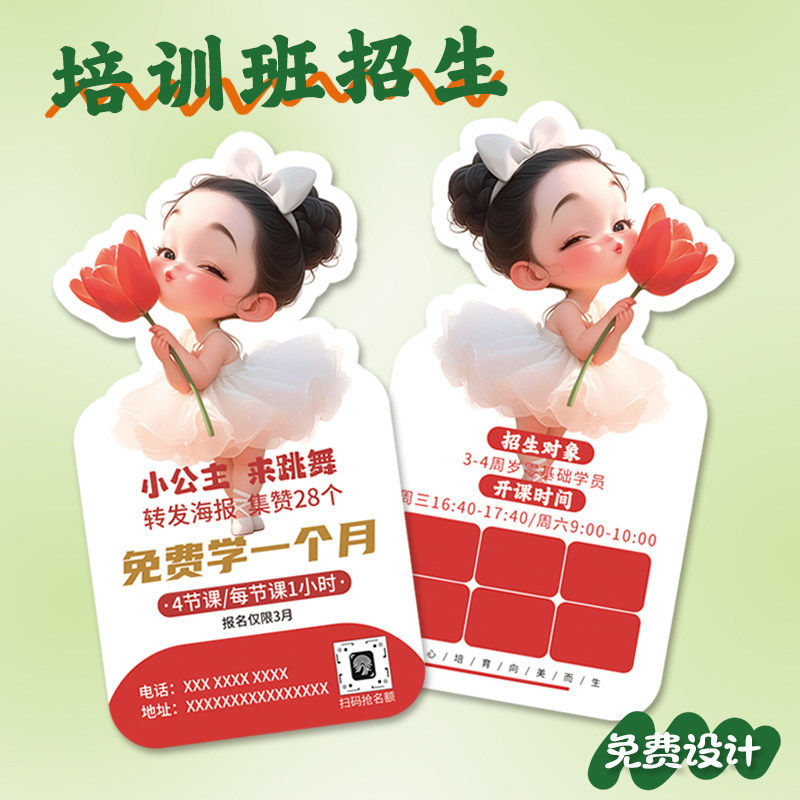 📚 招生卡定制培训机构广告宣传卡拓客卡设计兴趣班课程试听卡印刷