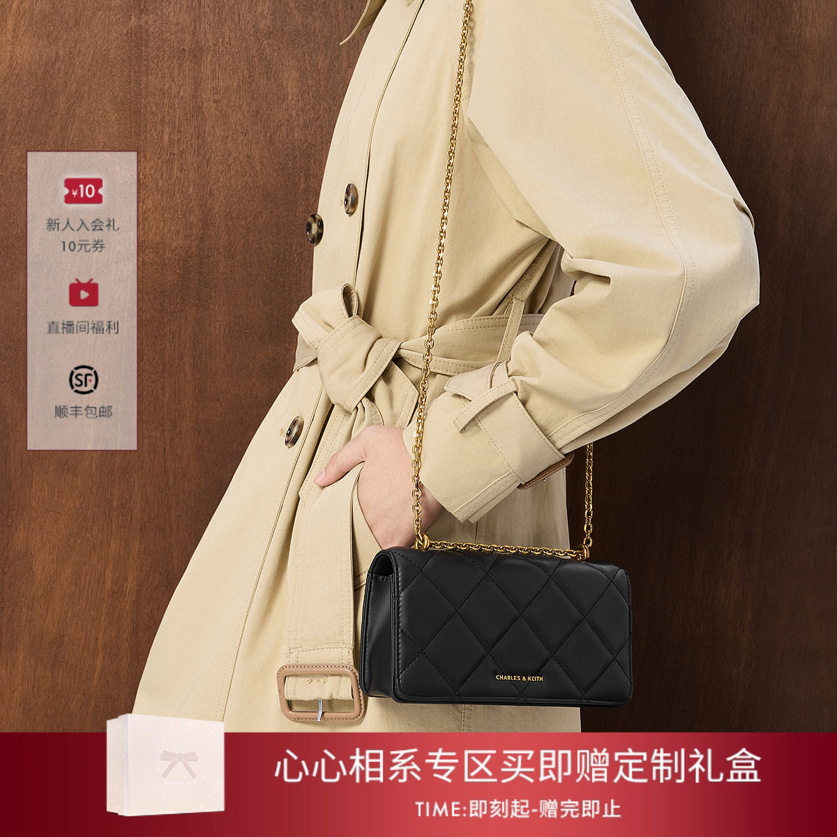📚 [情人节礼物]CHARLES&KEITH女包CK6-10680924菱格链条小方包婚包