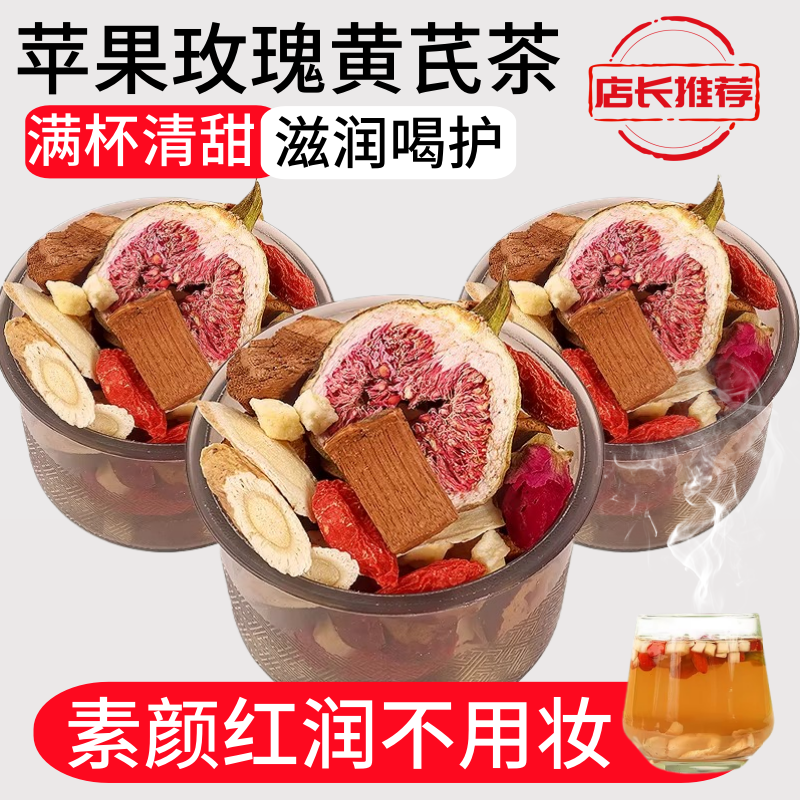 📚 苹果玫瑰黄芪水变小罐神白熬夜器脸色暗黄养颜女人喝气血养生花茶