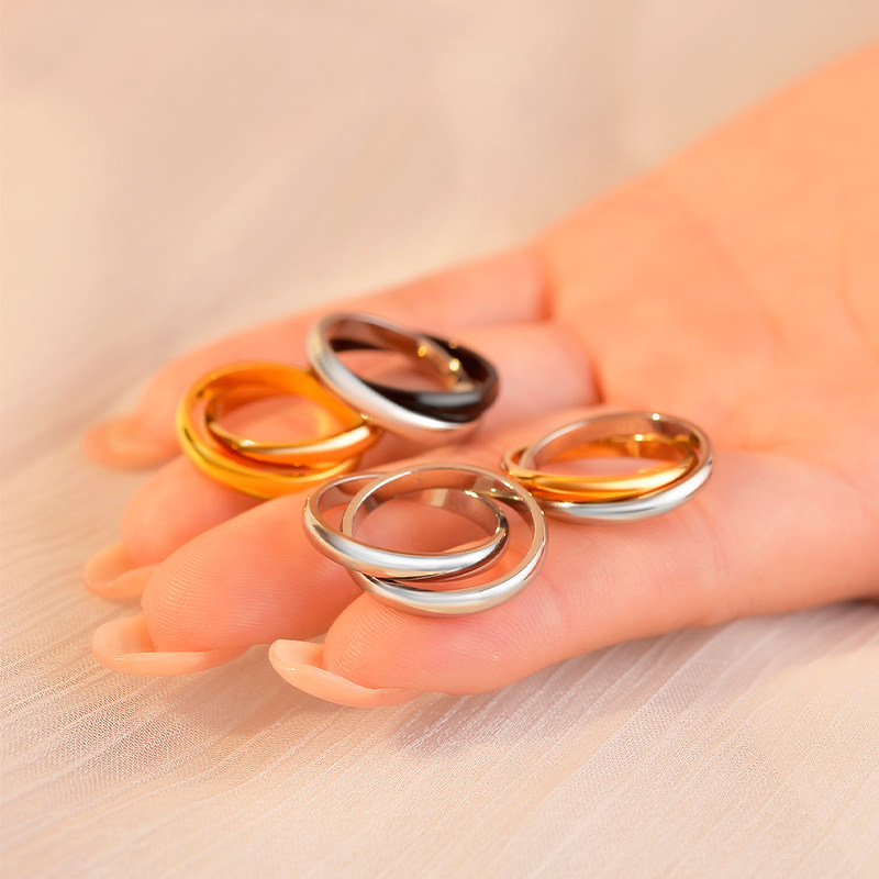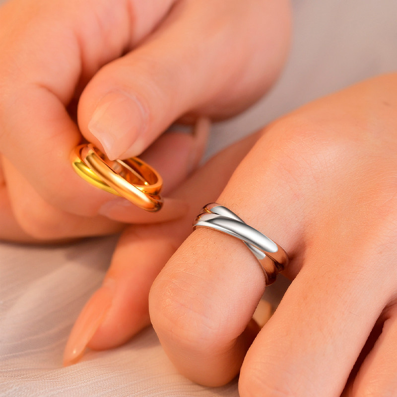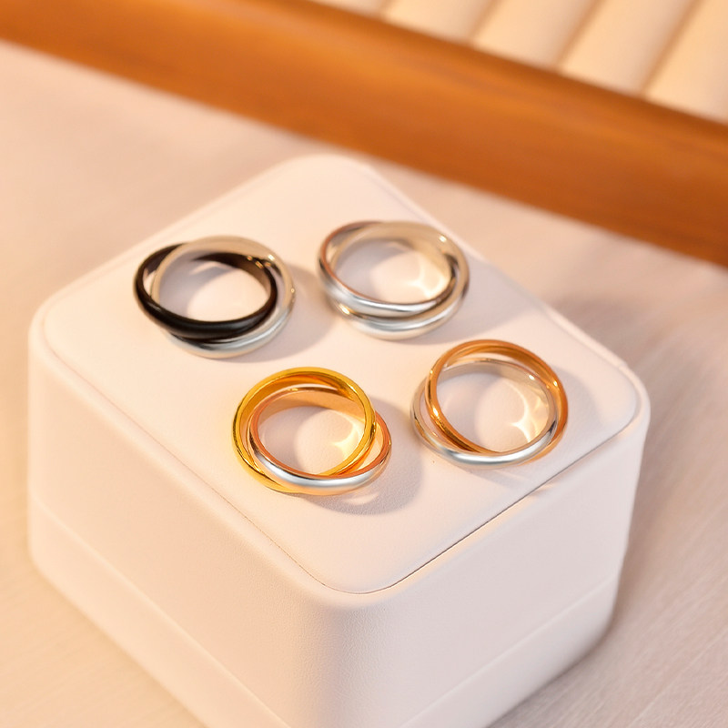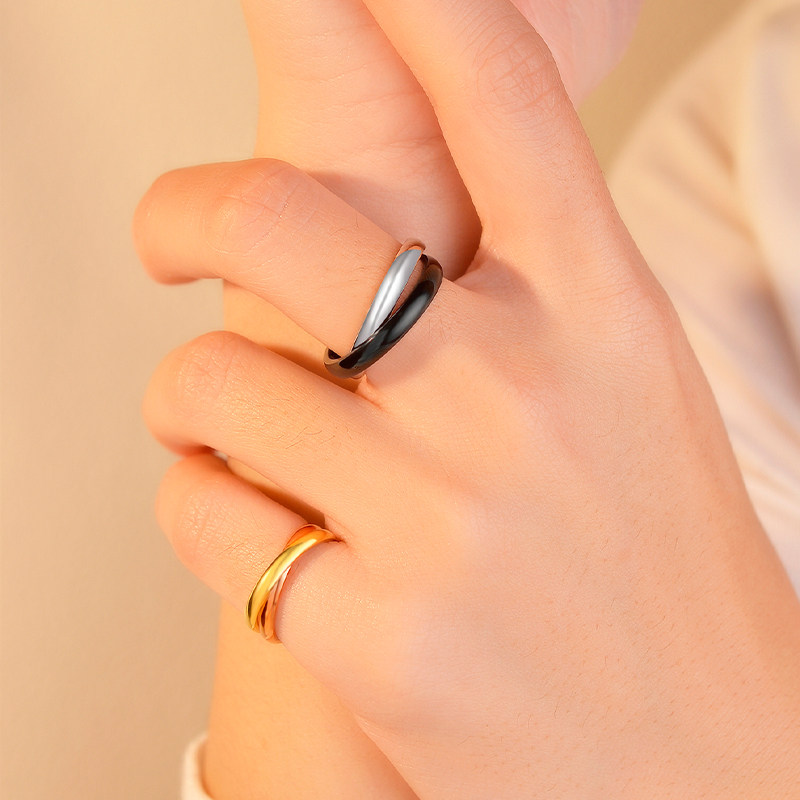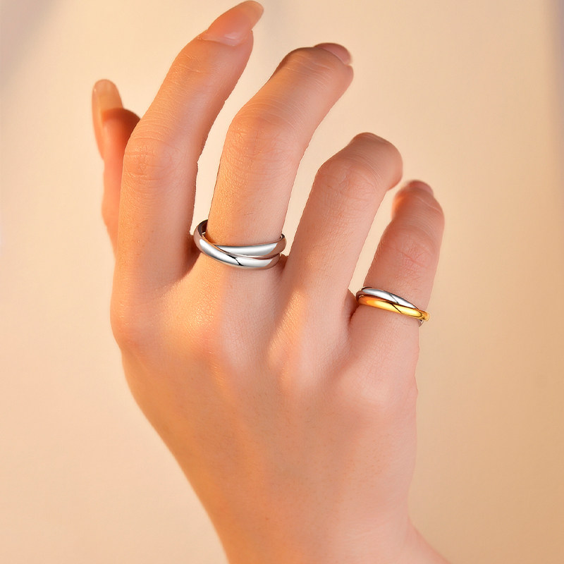 📚 双环双色戒指男女士情侣对戒小众尾戒超小小指精致小号双圈特小