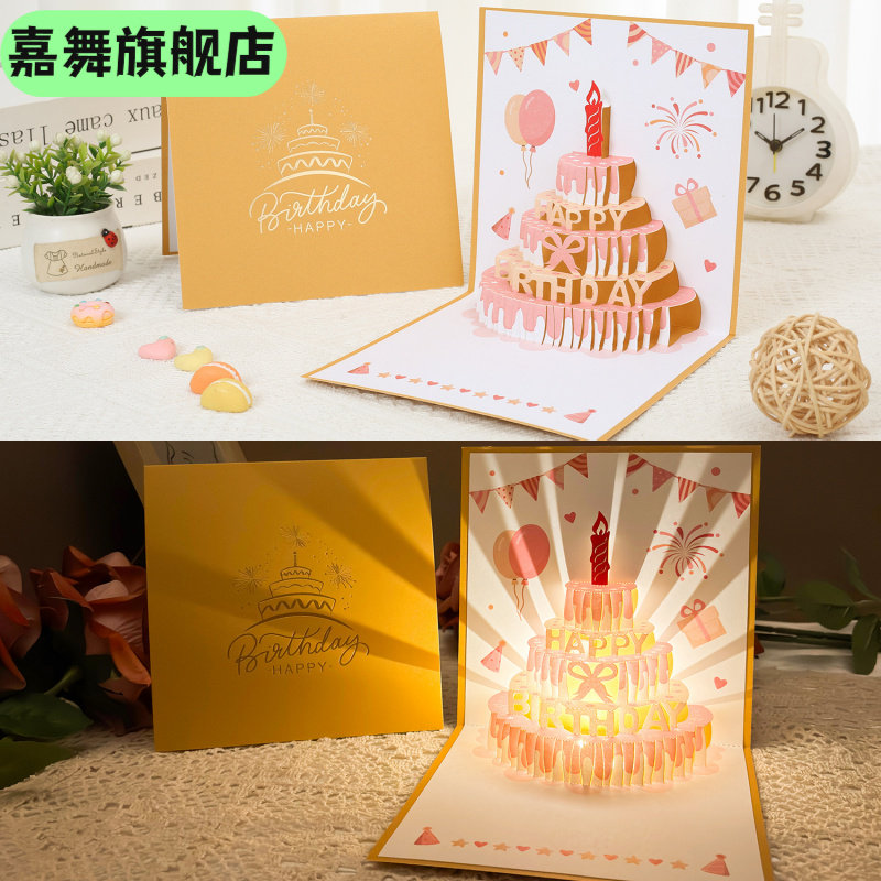 📚 音乐灯光立体生日贺卡生日礼物高级感发光蛋糕录音祝福贺卡