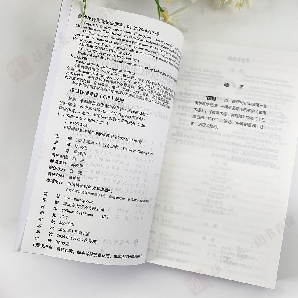 📚 【2026版】热病55版桑福德抗微生物治疗指南新译第55版 戴维·N.吉尔伯特等 范洪伟主译抗菌素药物疗法指南临床医学药学
