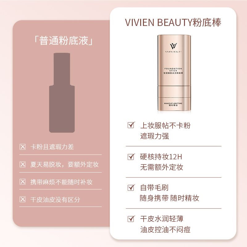 📚 VIVIEN BEAUTY双头橡皮擦VV粉底棒膏遮瑕24H持妆防水润正品女男士