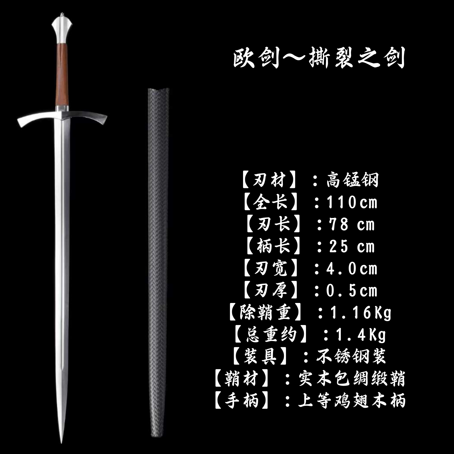 📚 欧剑西洋手半剑一体龙骨高锰钢长款双手大剑练习收藏冷兵器未开刃