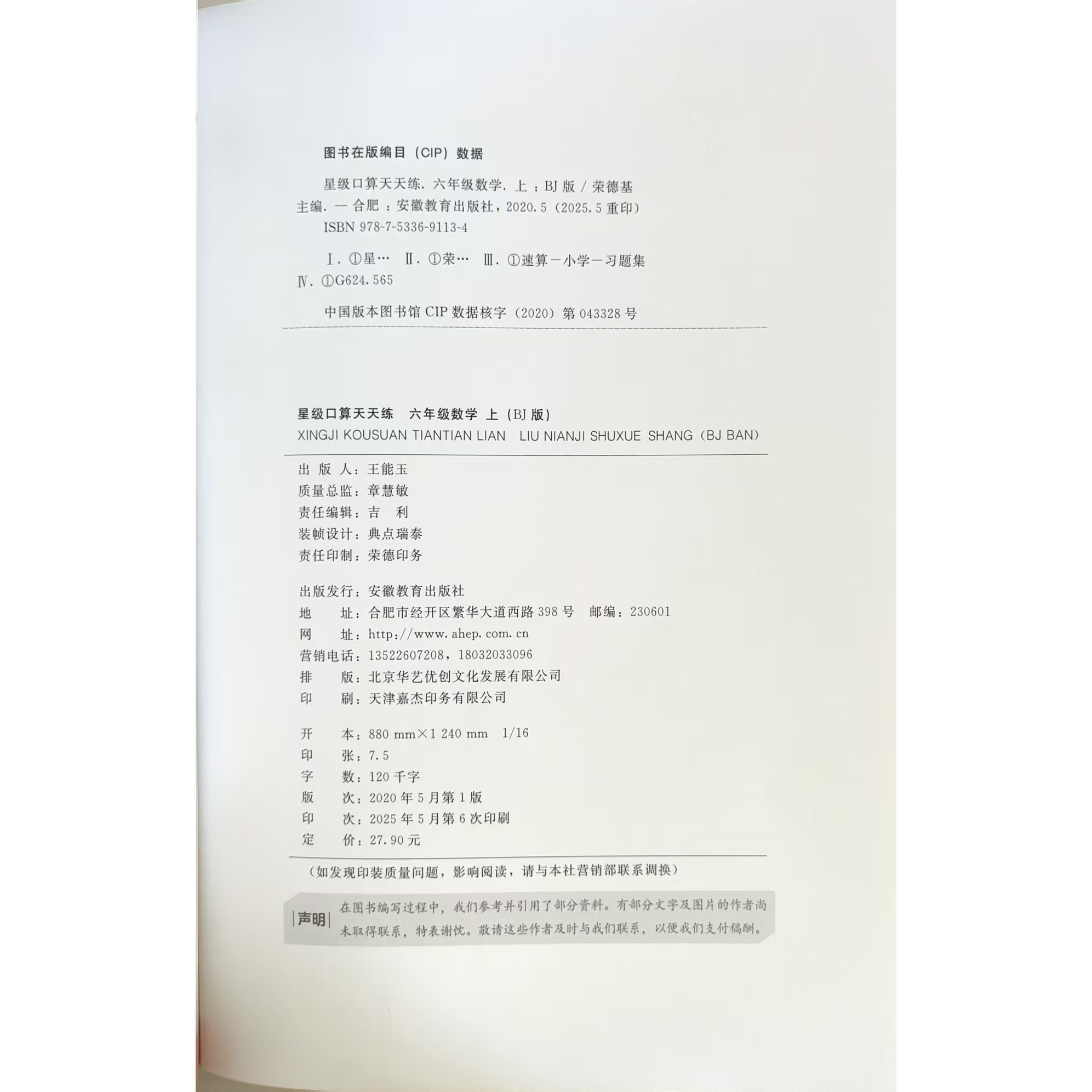 37¥ MF287 gjoPUNX5TdA¥ https://m.tb.cn/h.7xlINno 2025秋版星级口算天天练六年级上册数学北京版星级口算六上数学BJ同步口算练习册6上数学北京口算速算题卡荣德基六年级数学 --------------------- 【原售价】19.9元 【现售价】19.9元。