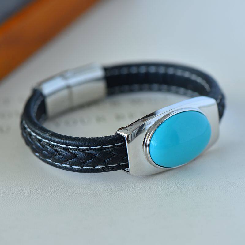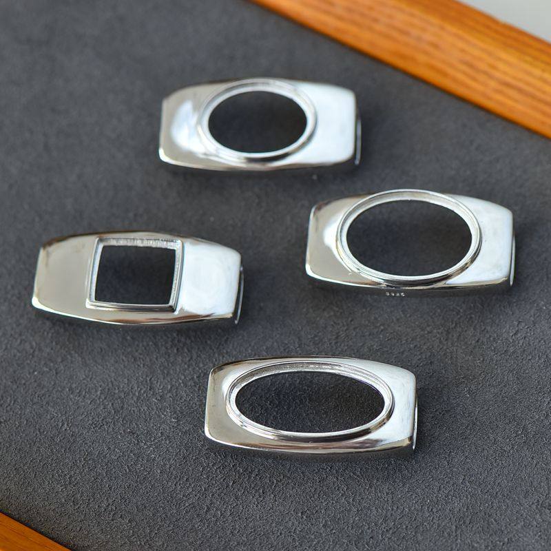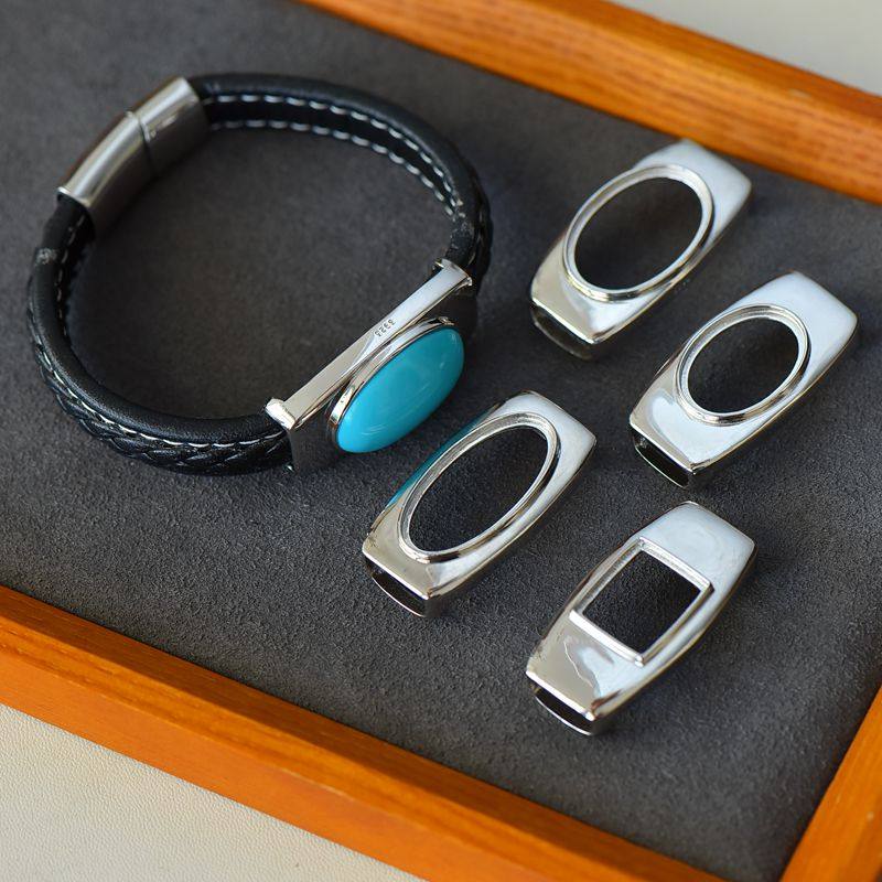📚 S925纯银手镯空托皮绳男女方14*16椭圆16*2218*2615*30IY玉石镶嵌