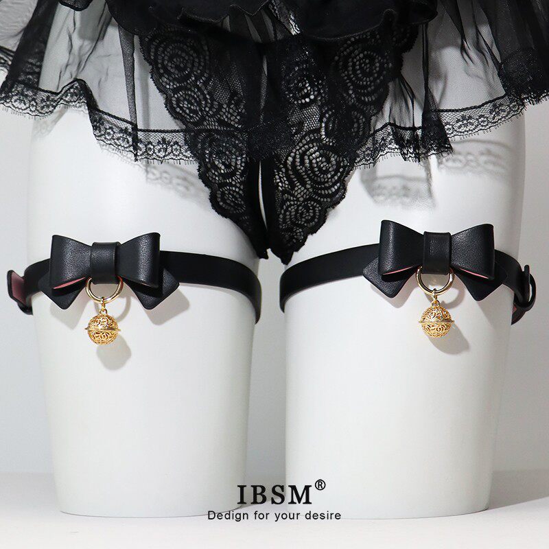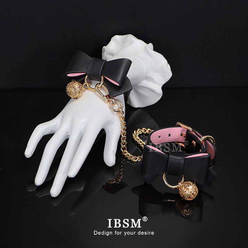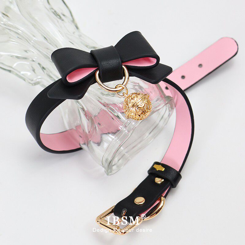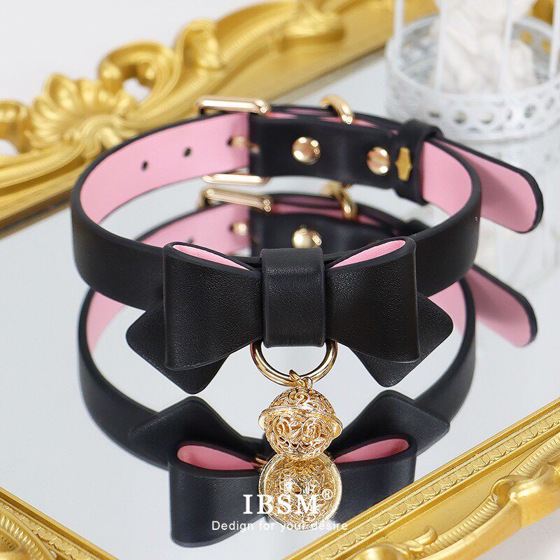 📚 蝴蝶结女m皮革项圈puppy牵引定制刻字Lolita铃铛手环脚环笼中鸟