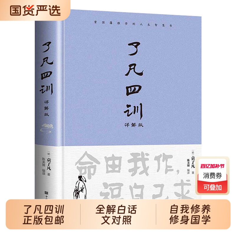 89¥ CZ057 uoO55RHA3re¥ https://m.tb.cn/h.iIk3dlR 精装正版了凡四训包邮全解白话文白对照袁了凡著文言文净空法师结缘善书自我修养修身国学哲学经典全集阅读论语 --------------------- 【原售价】15.8元 【现售价】15.8元。