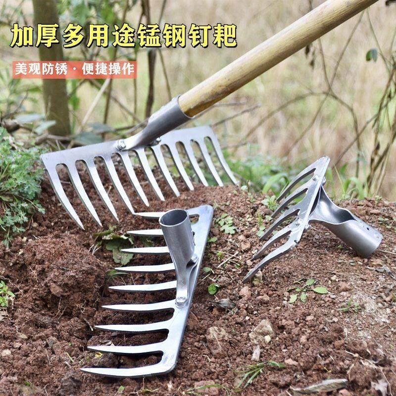 📚 农用钉耙农具多齿耙多功能钢扒子铁耙子搂草松土多齿草耙园林工具