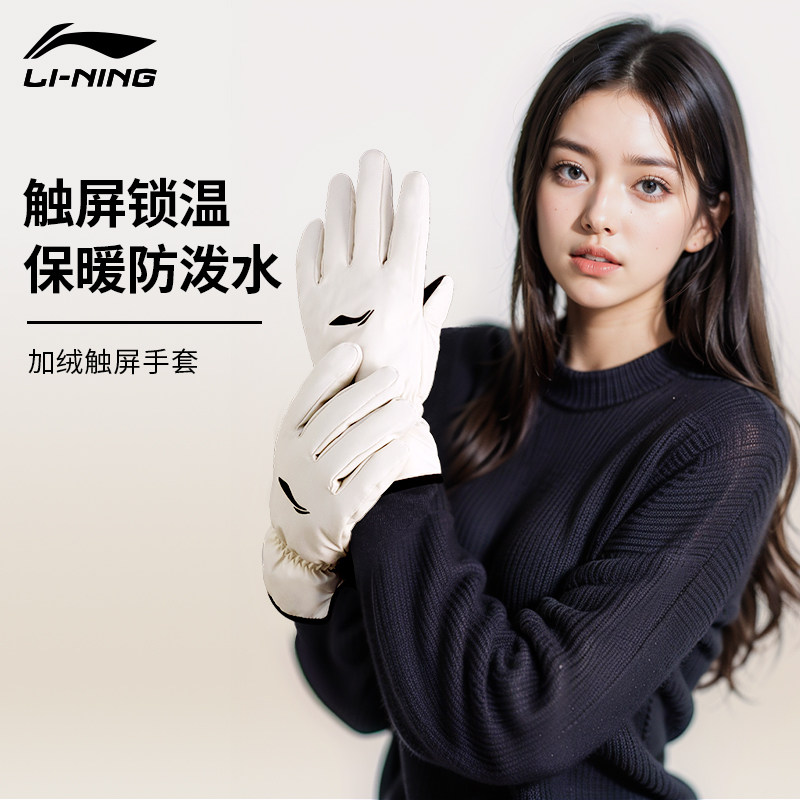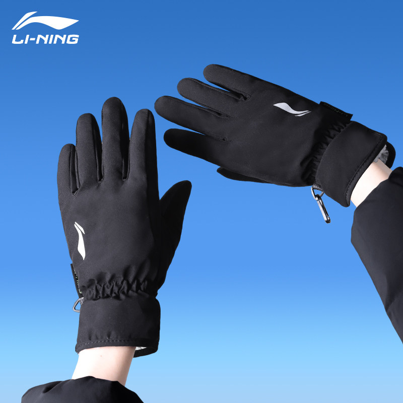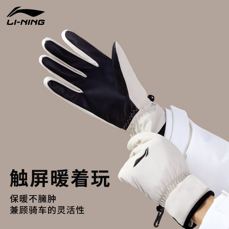 📚 李宁手套男冬季骑行女滑雪加绒加厚防泼水骑车保暖防寒防风电动车
