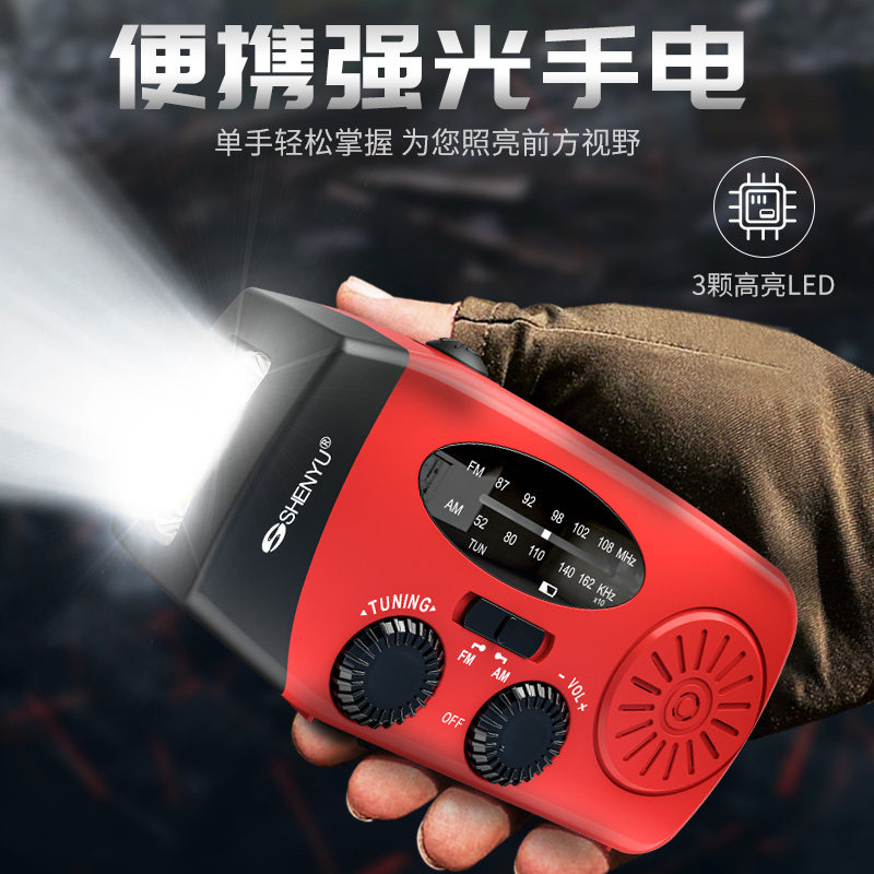 📚 战备应急随身收音机手电筒强光长续航太阳能充电多功能手摇户外
