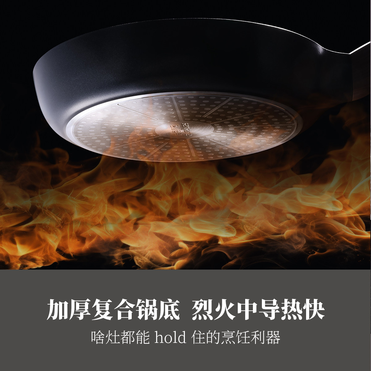 📚 [黑钻]帅帅sensarte平底锅煎锅不粘锅牛排锅带硅胶盖家用不粘锅