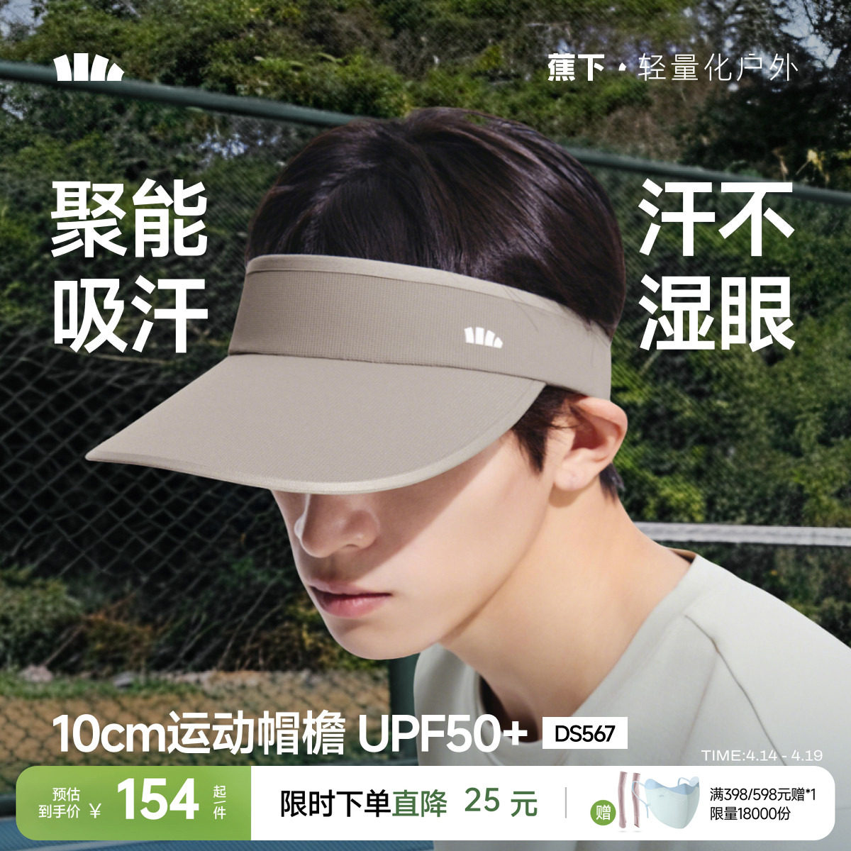 📚 蕉下男士空顶帽新款纯色可拆洗汗带透气帽子户外遮阳帽网球运动帽