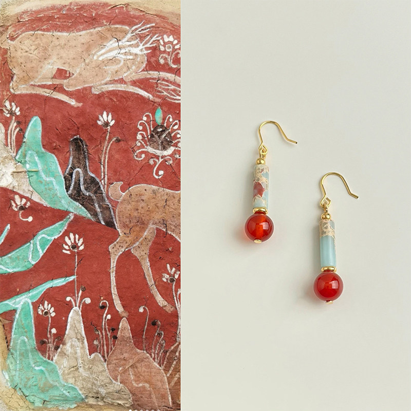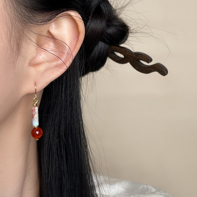 📚 新中式原创手作寿山石红玛瑙手链流苏耳环项链古风汉服首饰套装