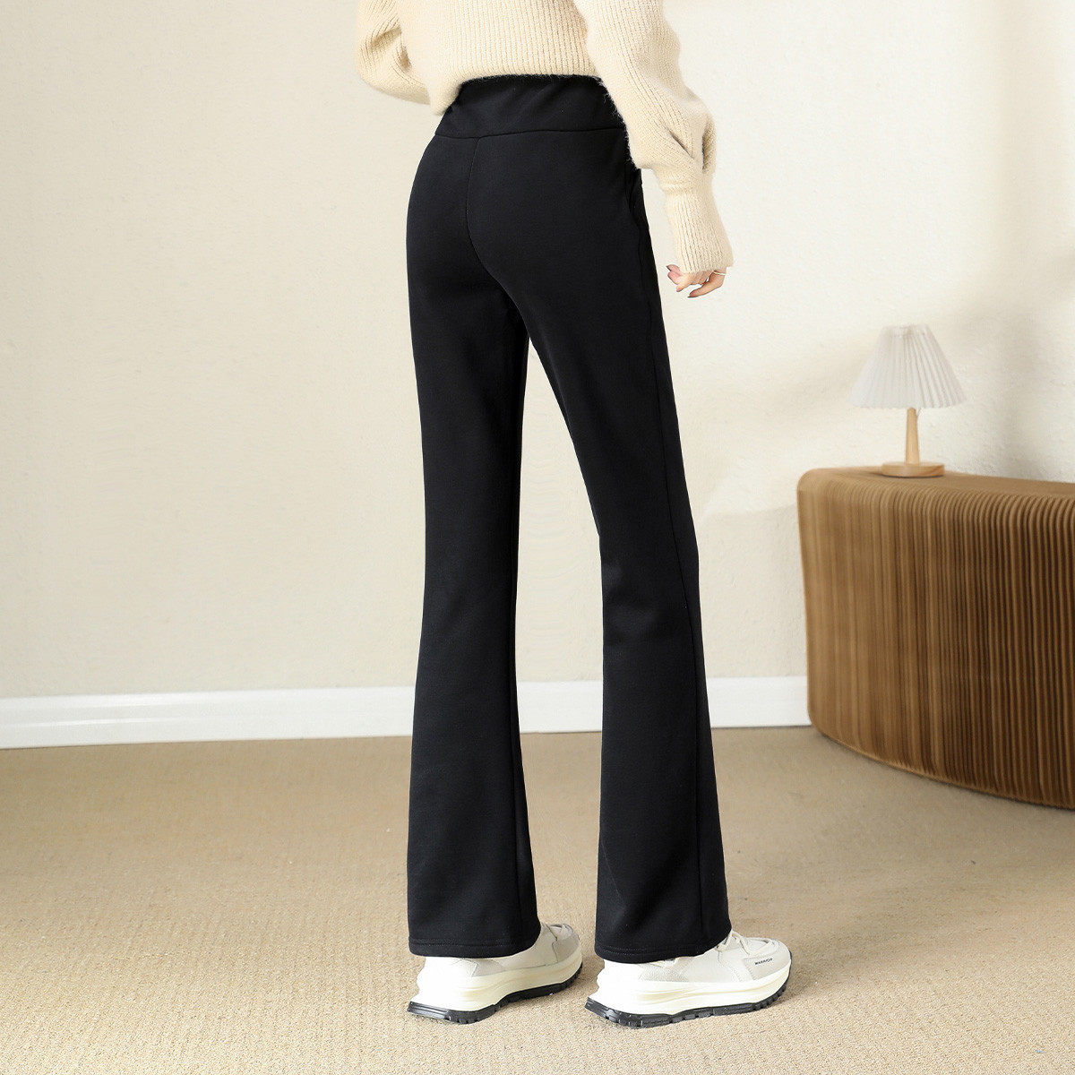 👀这款裤子真的是一见钟情!首先它的设计超级时尚,微喇的裤型展现出女性的优雅与曲线,让人看了就心动。而且,它的保暖性能也非常出色,加绒加厚的设计让整个冬季都温暖如春。