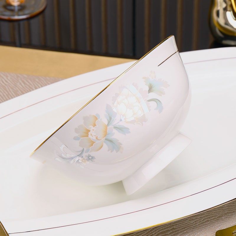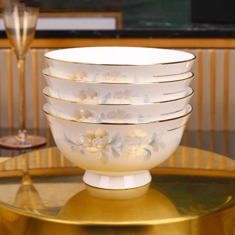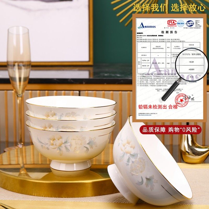 📚 碗家用碗高脚防烫景德镇碗饭碗高级感新款描金饭碗陶瓷餐具吃饭碗