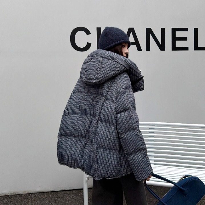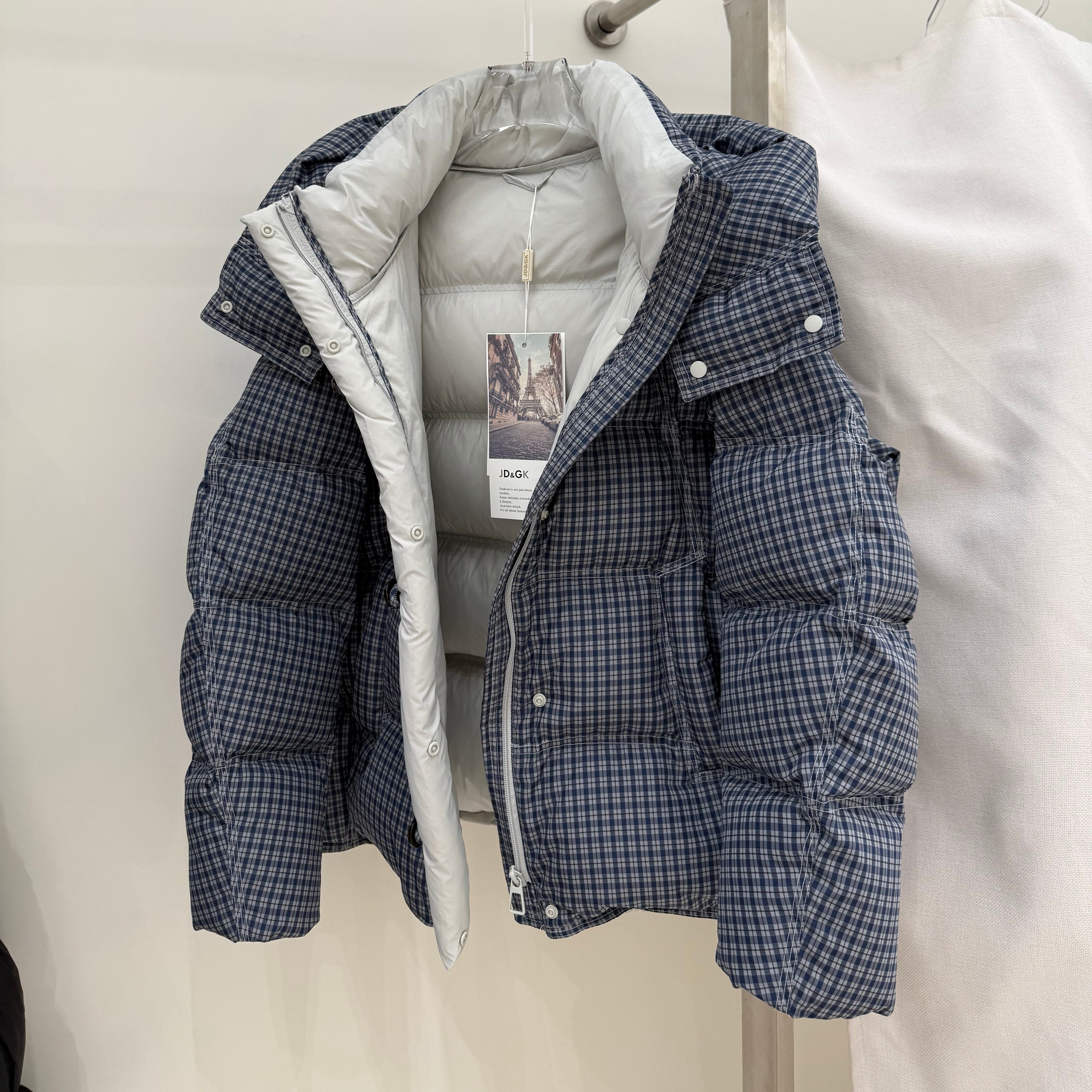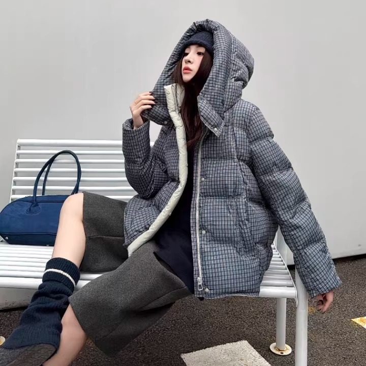 📚 2025新款韩系格纹90白鸭绒羽绒服女冬季宽松保暖连帽短款冬装外套
