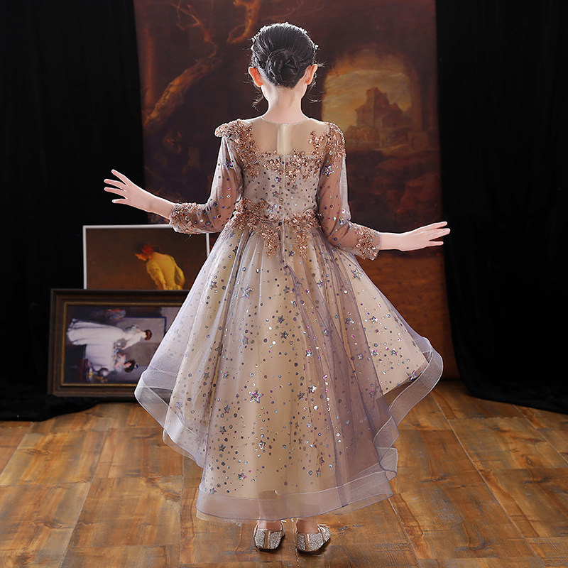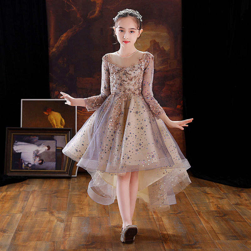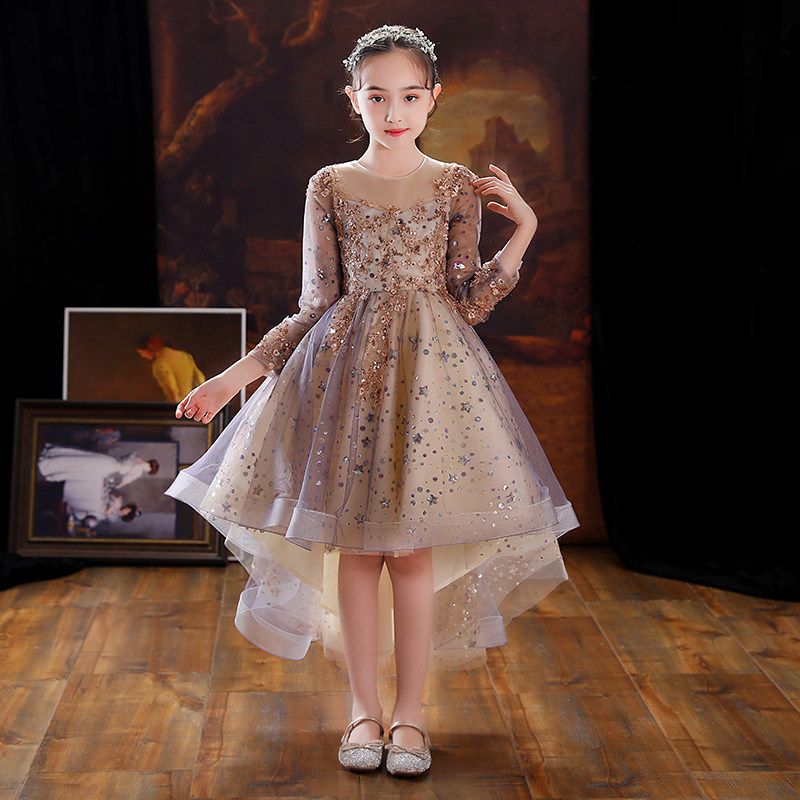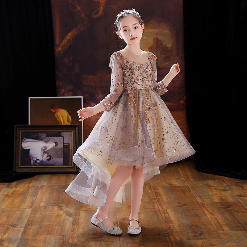 📚 儿童晚礼服女童婚纱宝宝周岁生日花童公主裙小孩高端主持人秋冬季