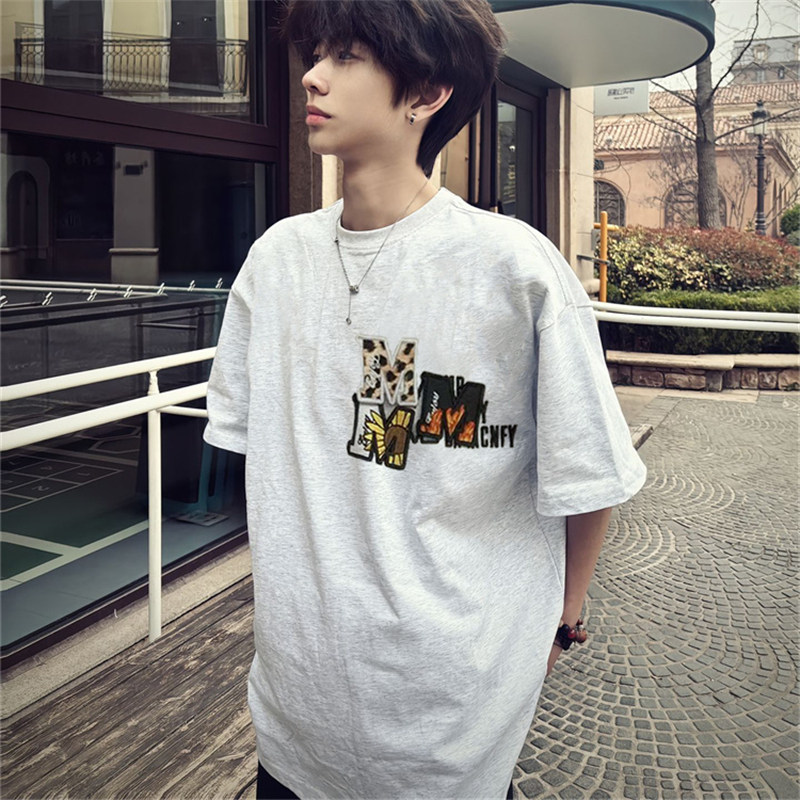 📚 美式高街短袖男款oversize刺绣纯棉2025新款t恤魔术贴重磅上衣潮