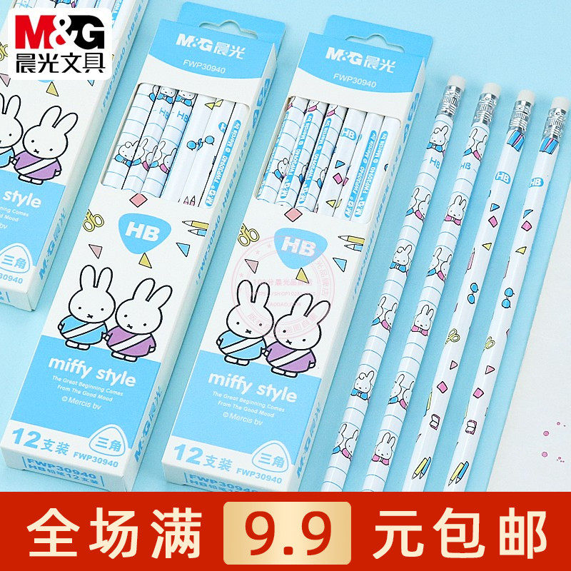 📚 晨光米菲HB三角木杆铅笔学生绘画儿童练字木头笔带橡皮擦FWP30940