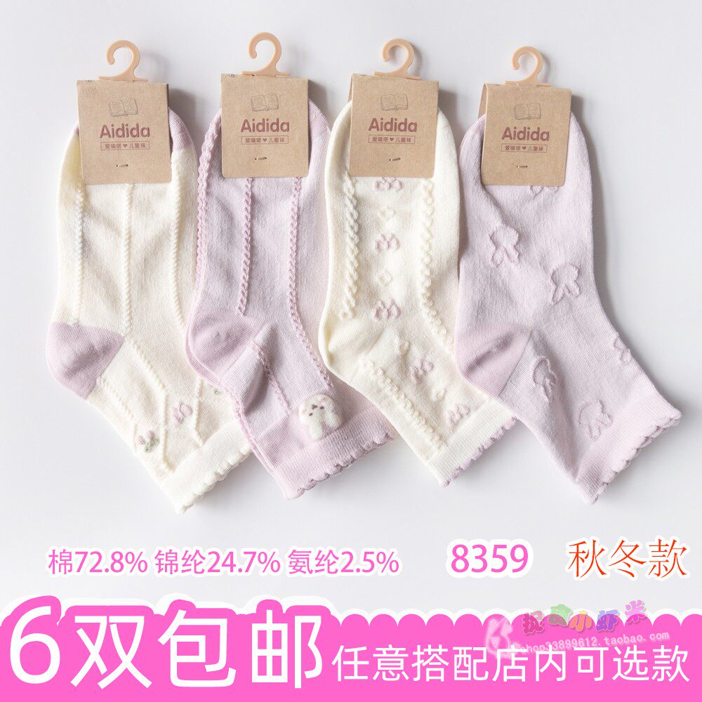 📚 爱嘀嗒品牌2025秋冬女孩童宝贝紫色系小兔子小花抗起球儿童棉袜子