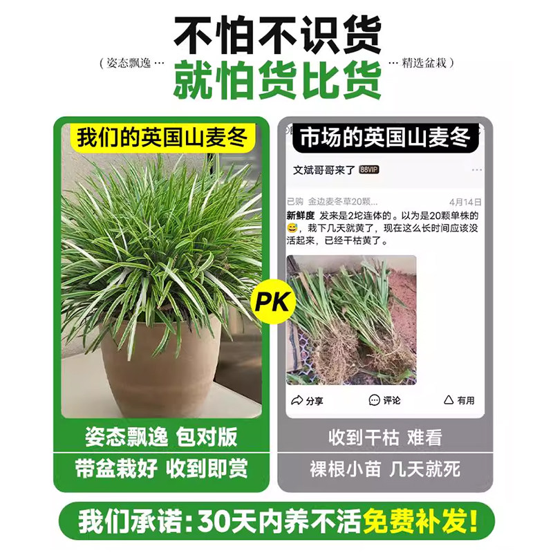 📚 英国山麦冬盆栽纯金啤酒阔叶金边室内外耐寒耐热花镜四季常绿植物