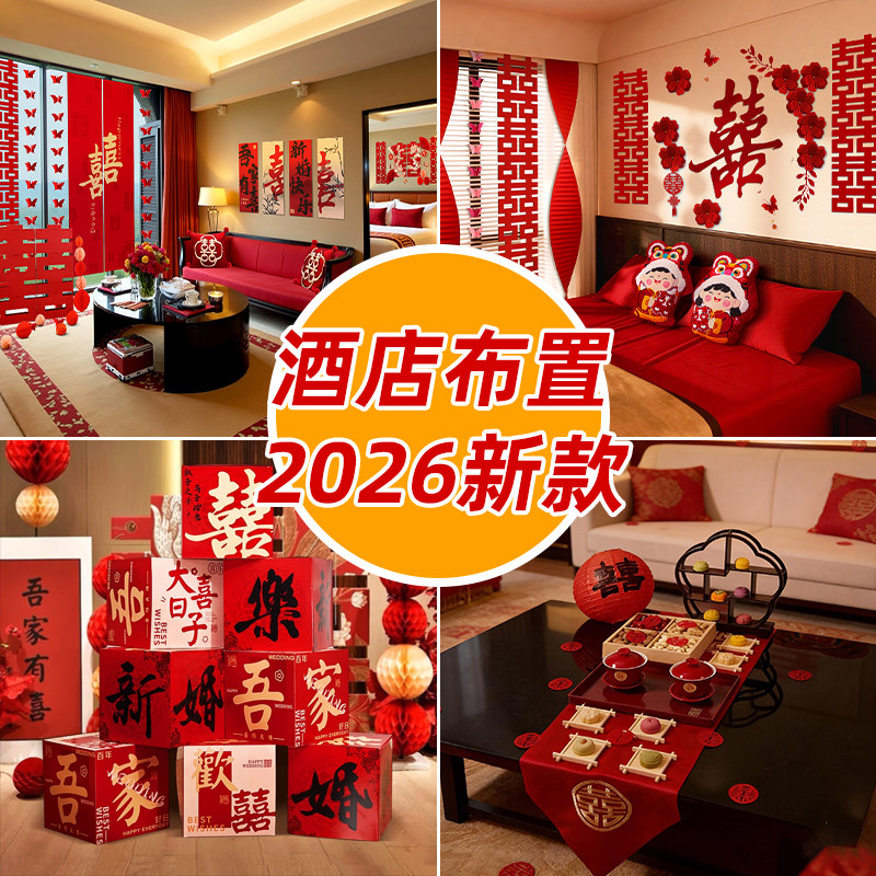📚 婚房布置酒店婚礼接亲女方出嫁房间装饰结婚男方新房卧室拉花套装