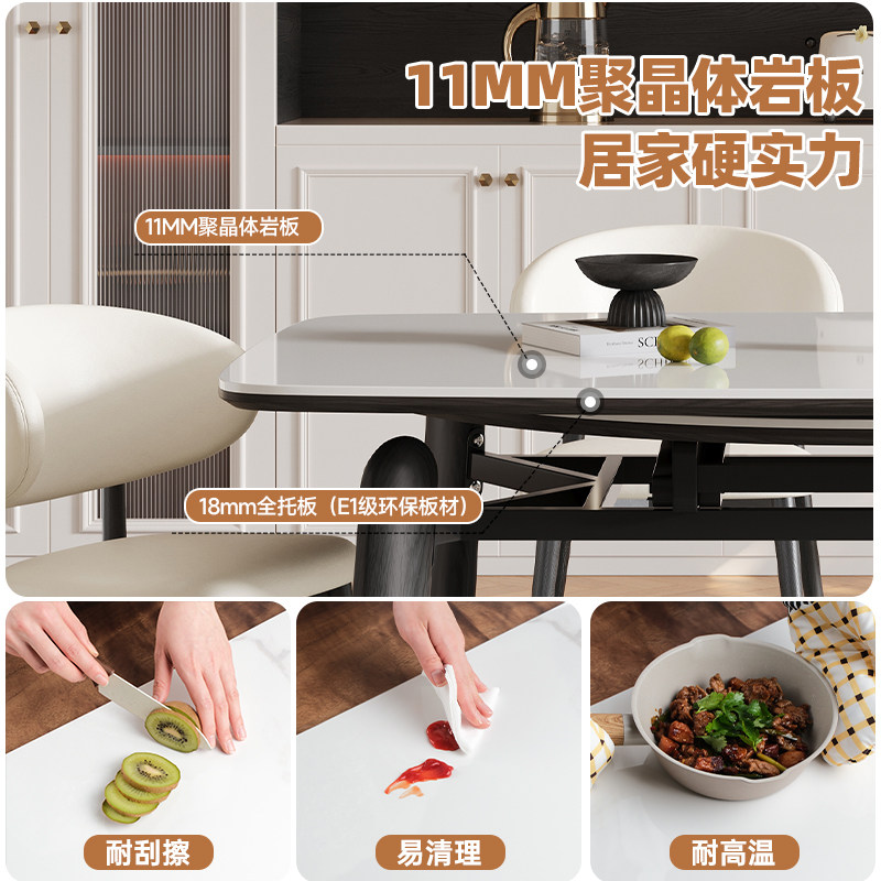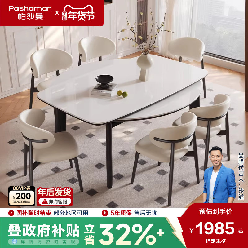 📚 帕沙曼伸缩全托岩板餐桌椅新款法式复古白蜡木家用实木可变圆饭桌