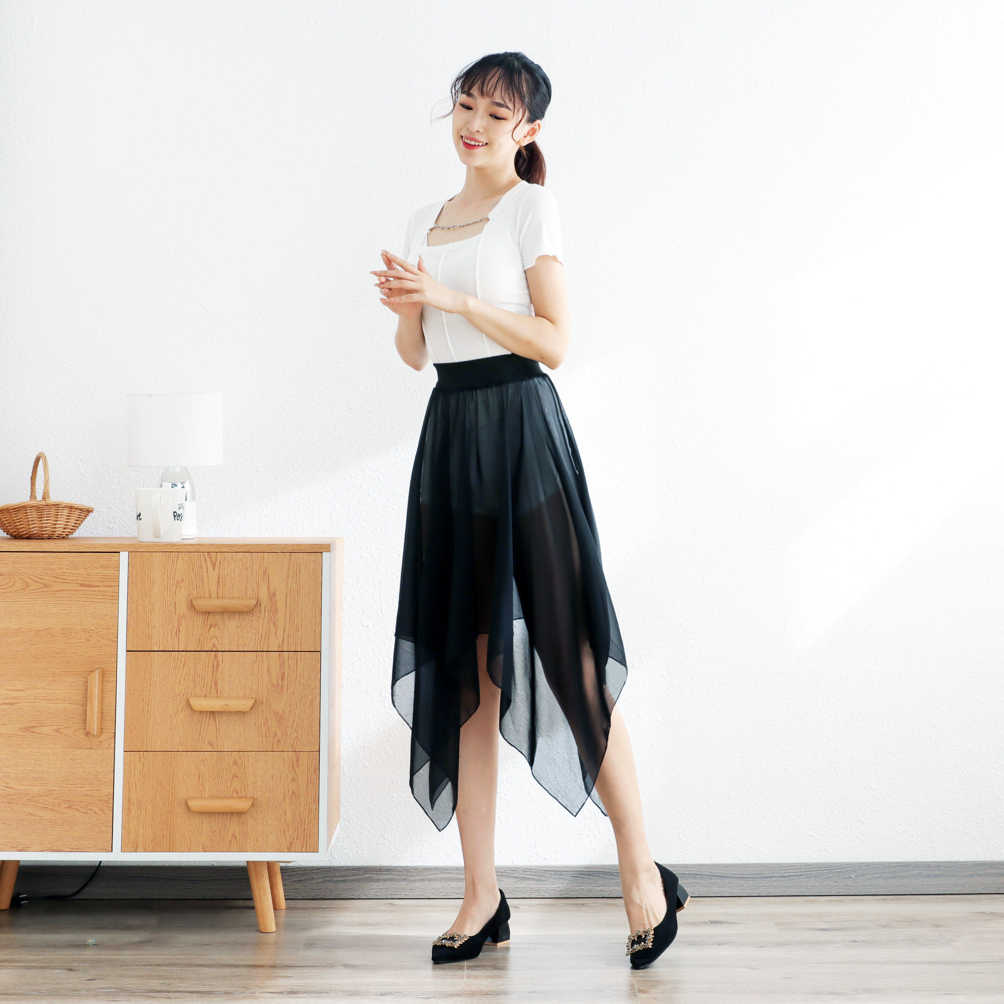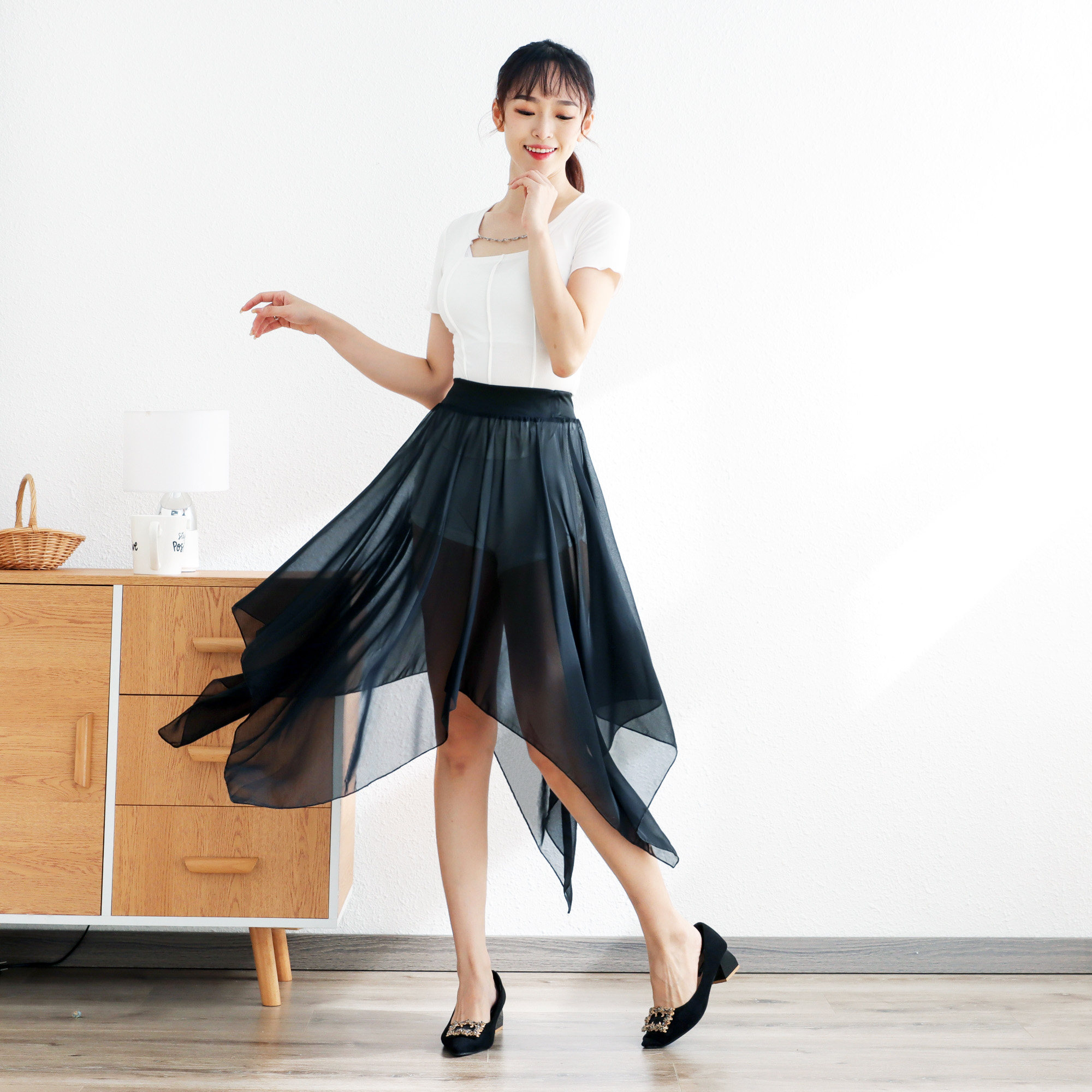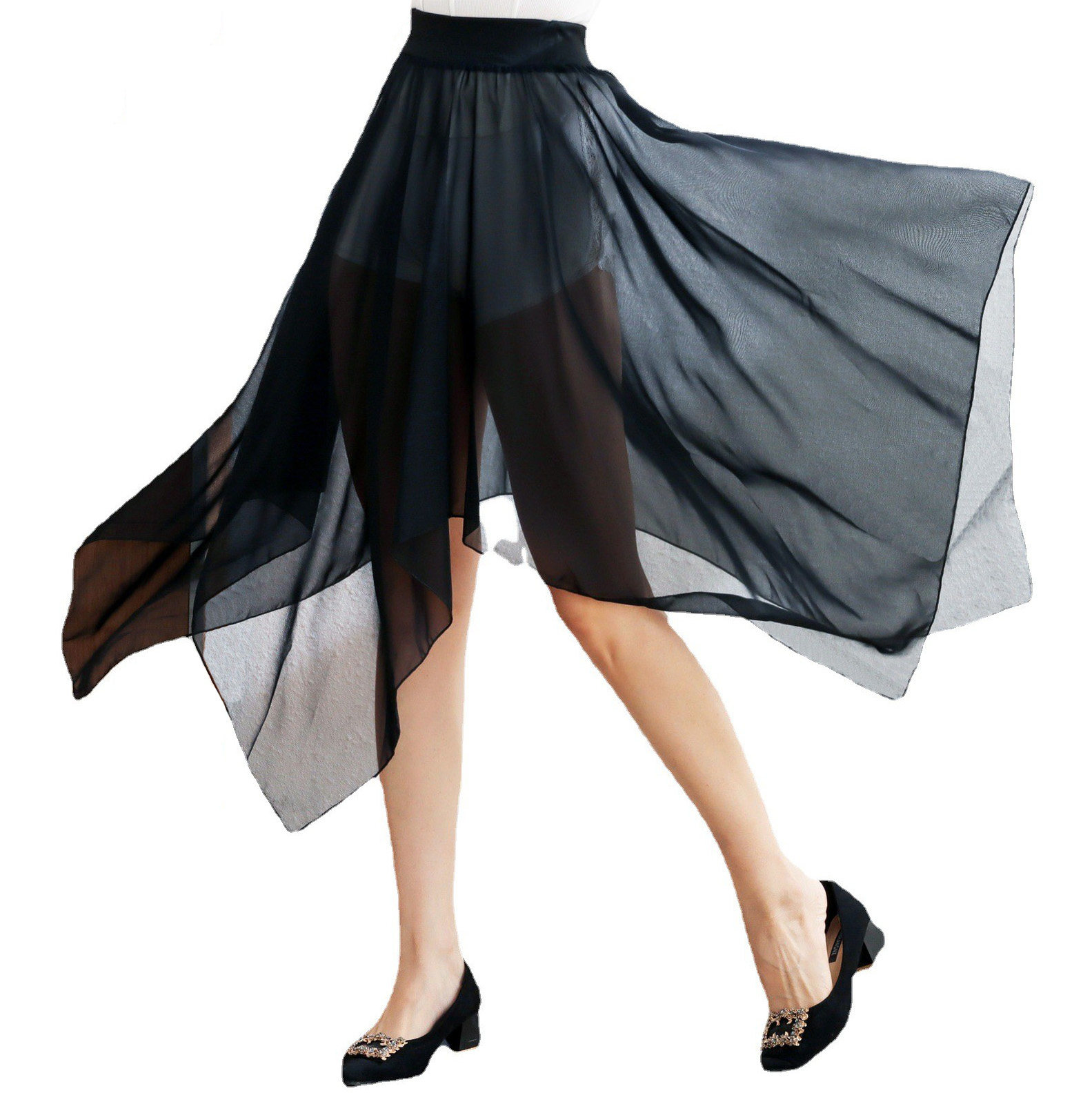 📚 不规则网纱半身裙中长款百褶裙长裙夏季新款百搭高腰A字透视纱裙