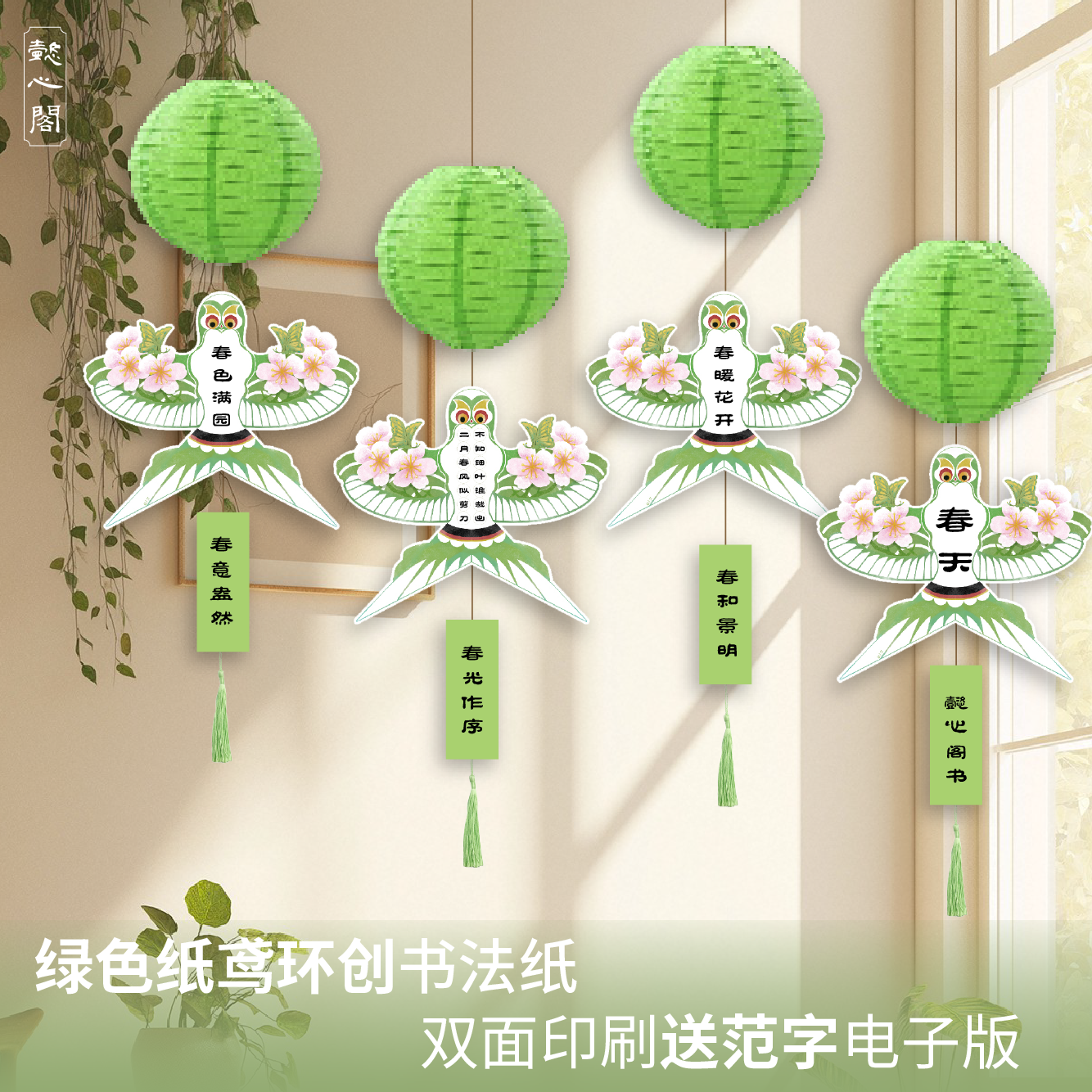 📚 懿心阁绿色纸鸢环创硬笔书法作品纸春天幼儿园学校教室布置古诗抄写纸钢笔毛笔创意小学生田字格书法纸中国风