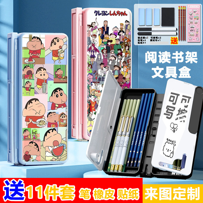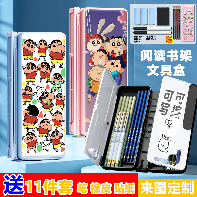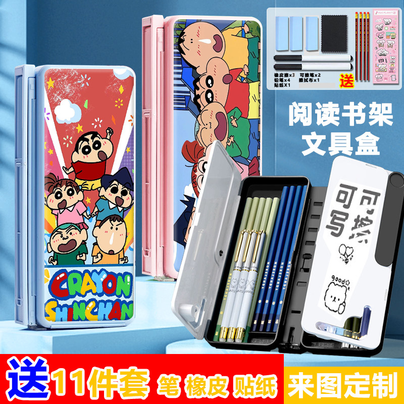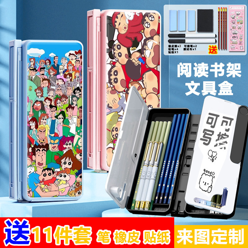 📚 蜡笔小新阅读书架笔盒可折叠可调节看书支架学生伸缩多功能文具盒
