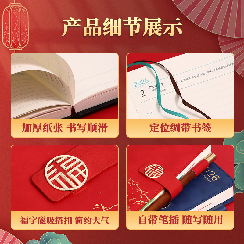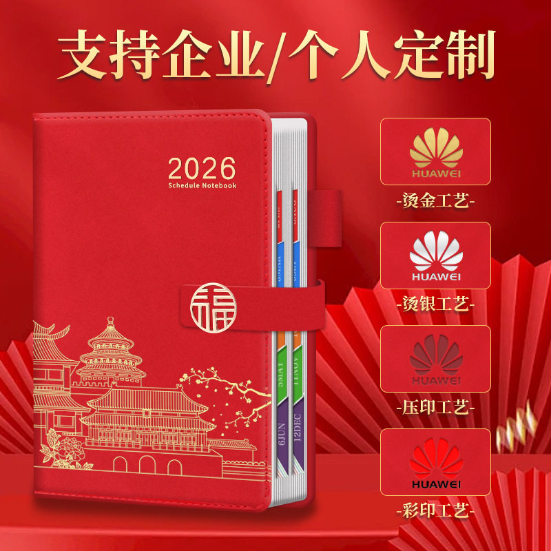 📚 2026年日程本国潮计划表新款定制笔记本子工作日志一日一页日记本记事本自律打卡效率手册时间管理可订logo