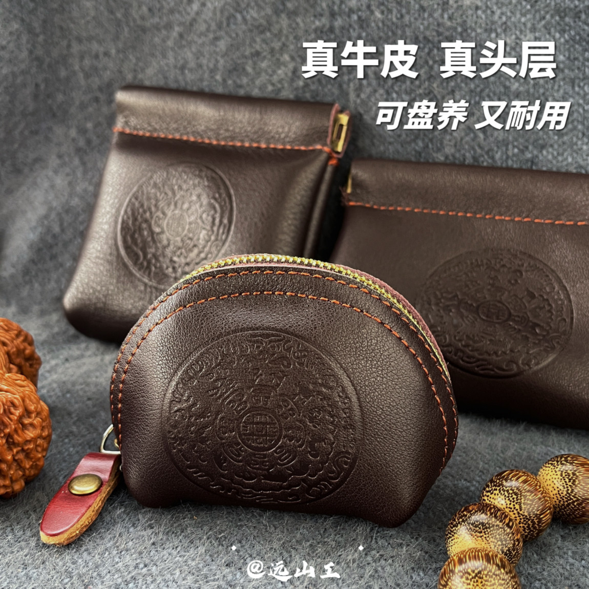 📚 头层牛皮文玩随身包收纳袋盘玩袋装金刚核桃葫芦橄榄核小包常用款