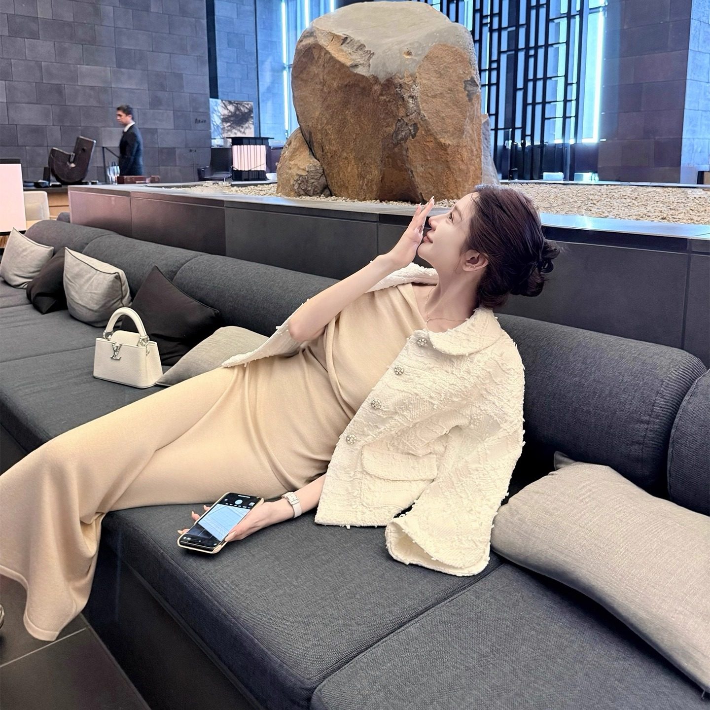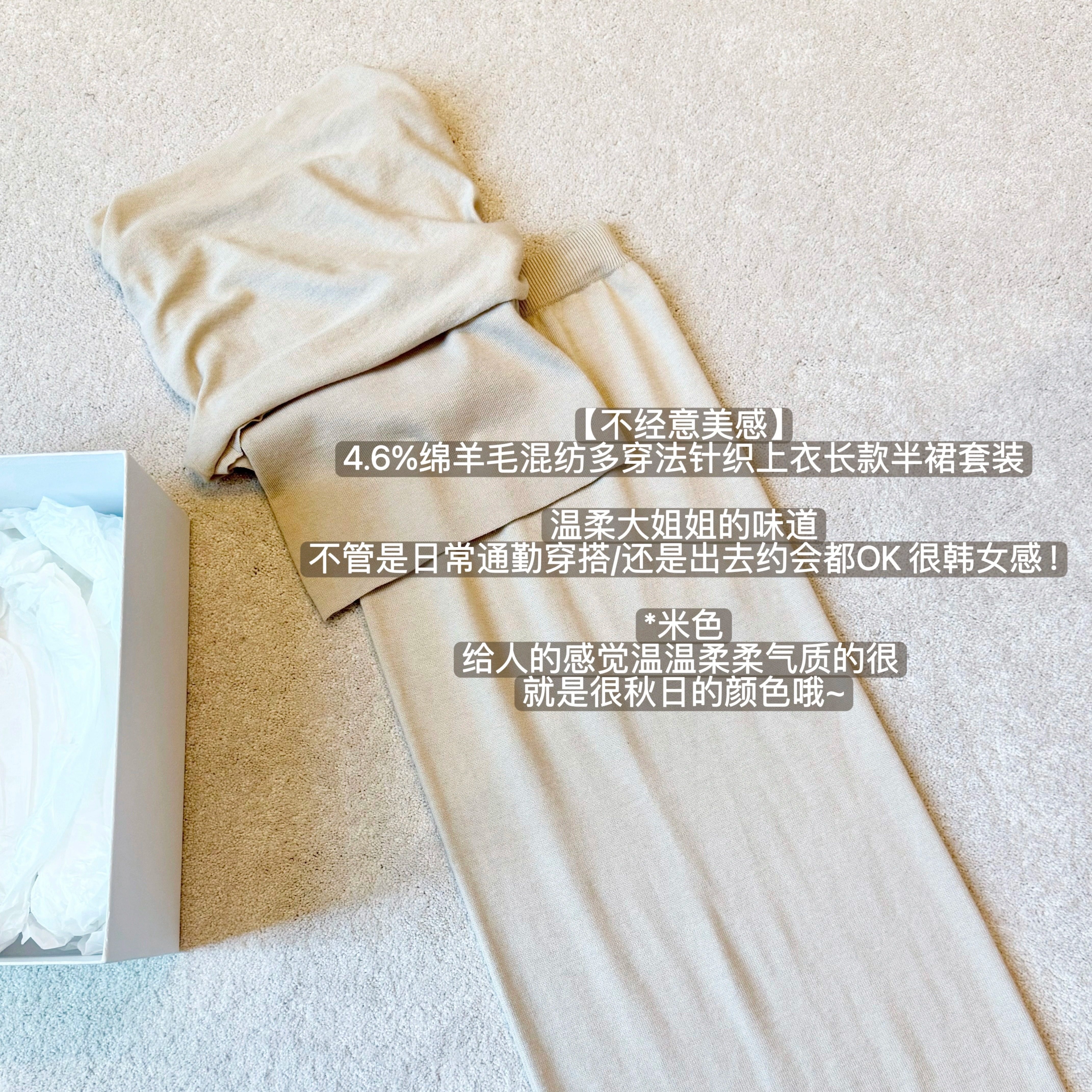 📚 韩雨嘉【不经意美感】4.6%绵羊毛混纺多穿法针织上衣长款半裙套装