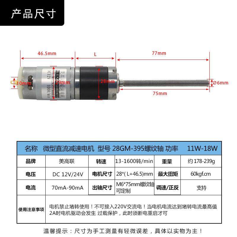 📚 28-395螺纹轴直流减速电机微型行星齿轮丝杆长轴12V24V调速小马达