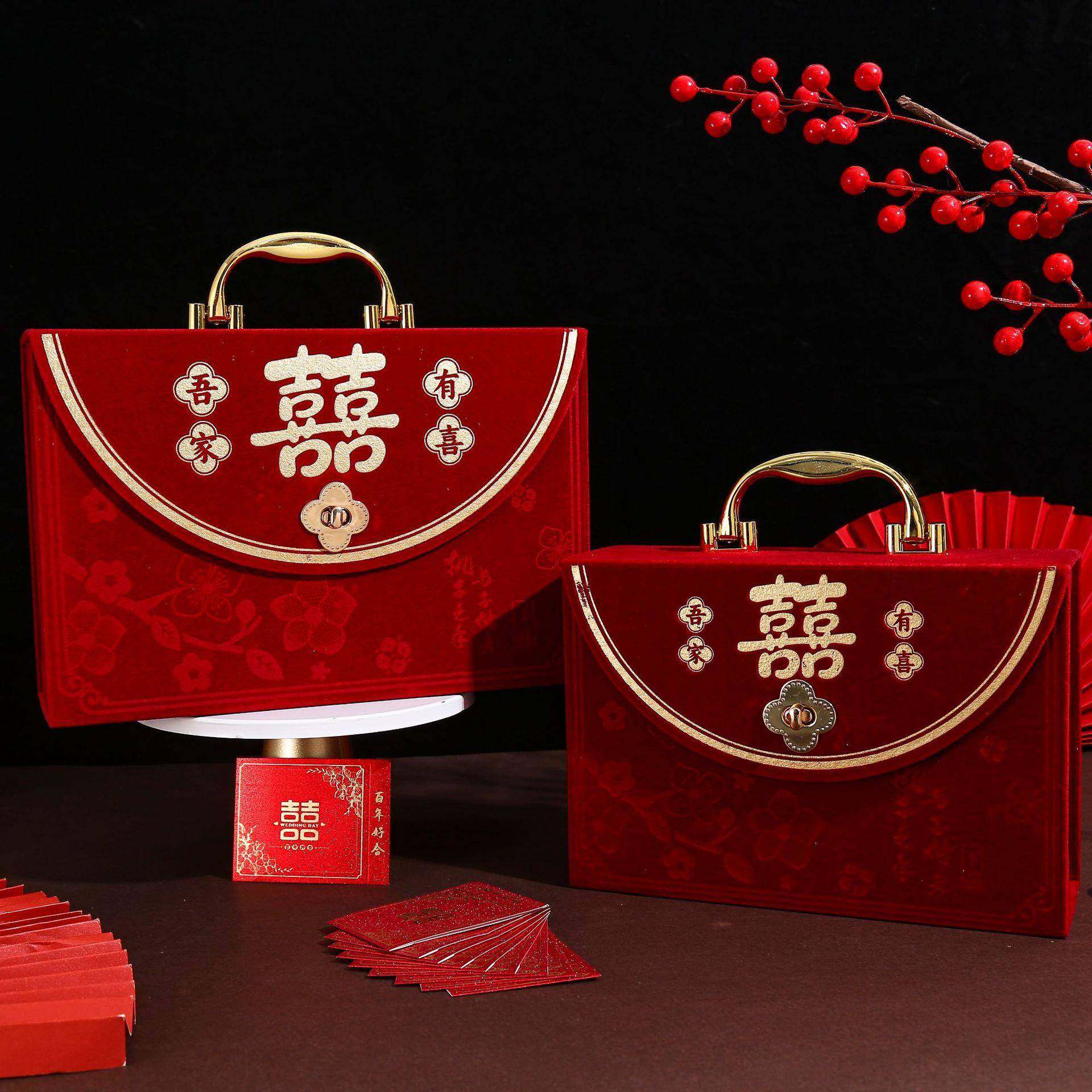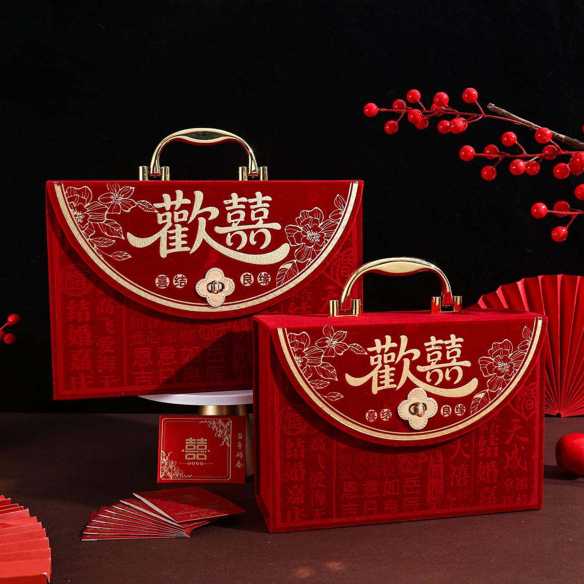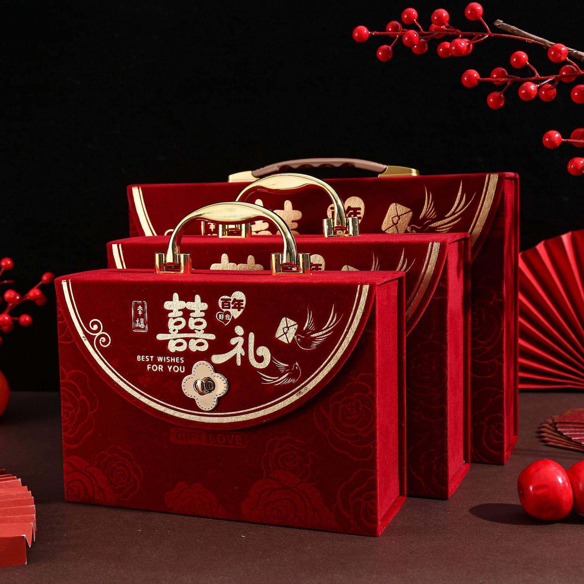 📚 新款彩礼钱盒子订亲聘礼装彩礼的箱子盒子结婚用品订婚烫金