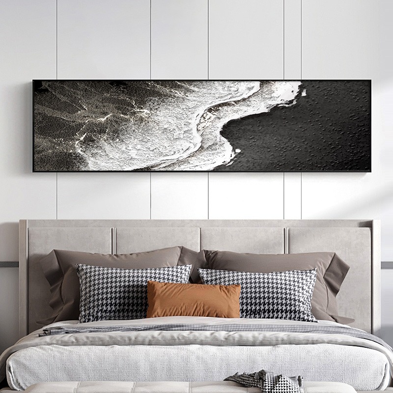📚 大海风景卧室画主卧床头装饰画黑白抽象客厅挂画高级感背景墙壁画