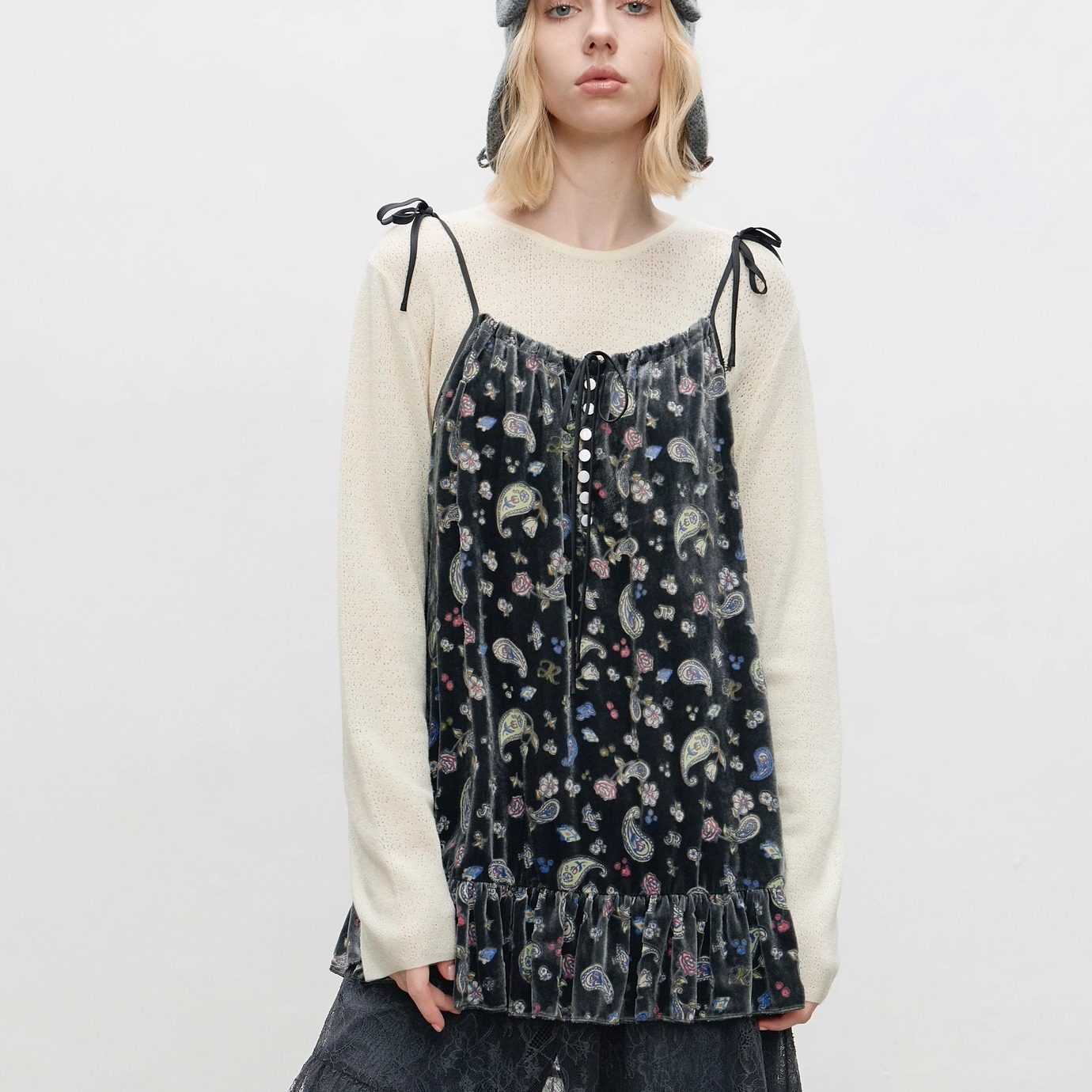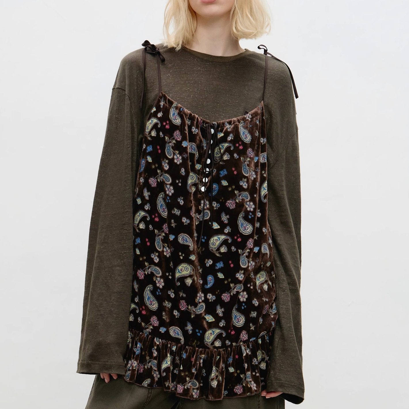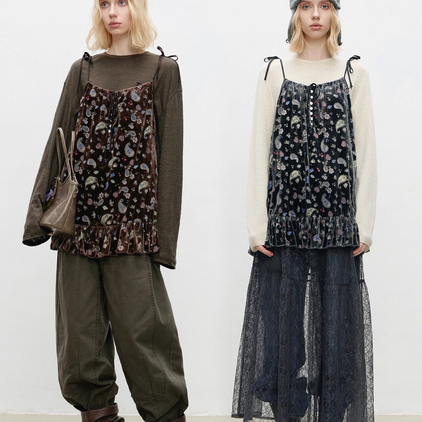 📚 Journal Record2025秋冬新款复古佩斯利印花随性甜美丝绒吊带裙