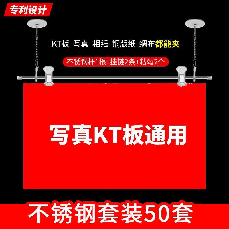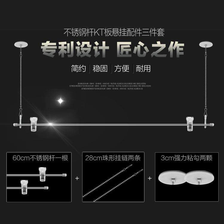 📚 吊旗悬挂杆kt板夹吊旗挂钩60cm三件套超市商场不锈钢广告海报夹子