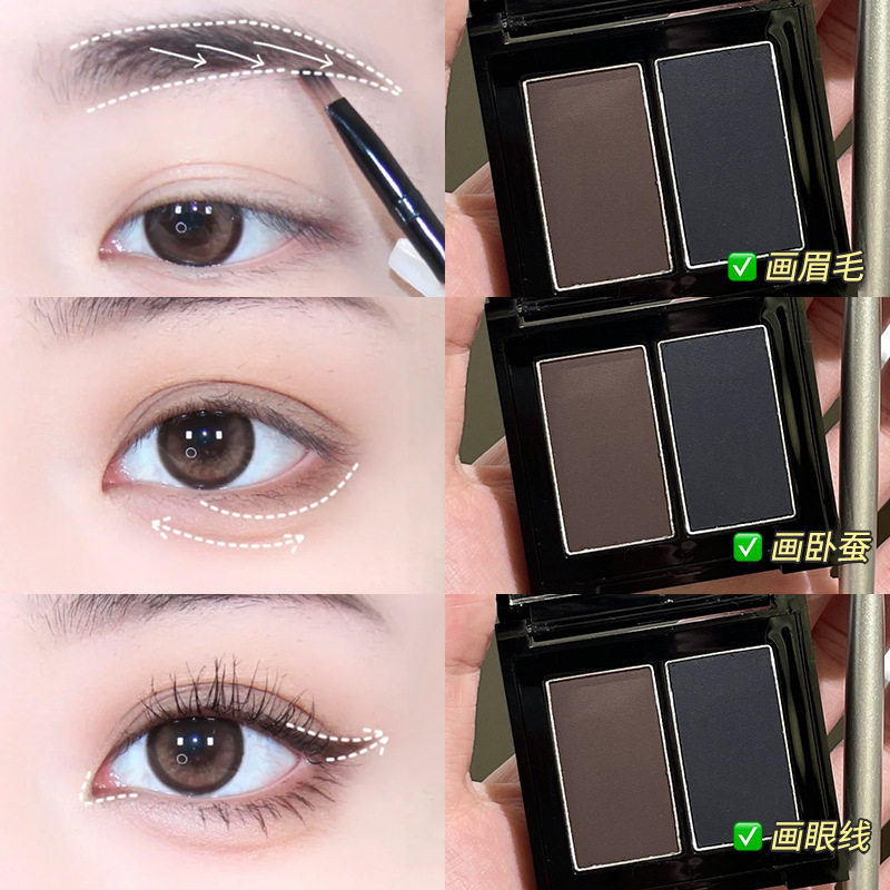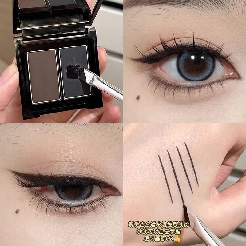📚 眼线下至一盘搞定!水溶性双色眼线粉 棕色黑色显色哑光自然眉粉女