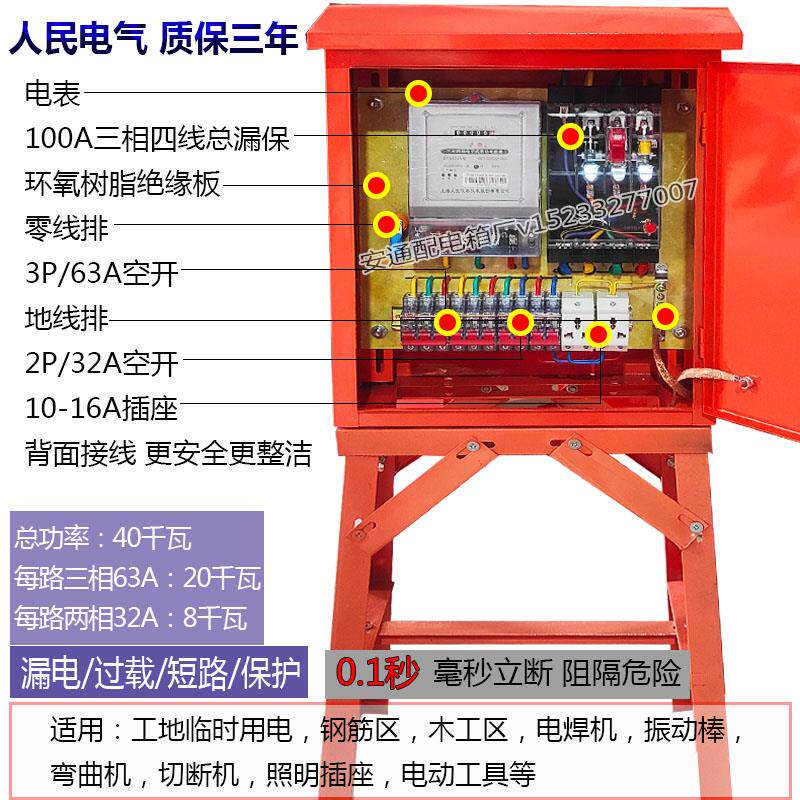📚 建筑工地临时标准三级配电箱三相四线100A带电表高脚支架配电箱