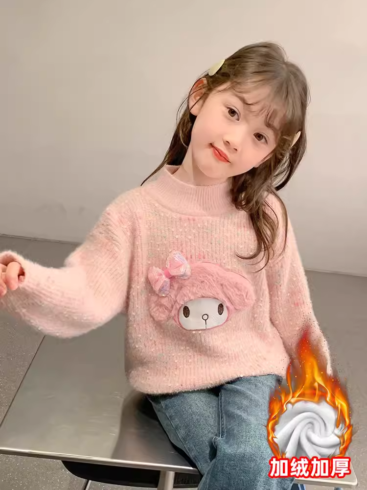 📚 女童卡通毛衣秋冬款2025新款小女孩加绒加厚可爱库洛米内搭打底衫