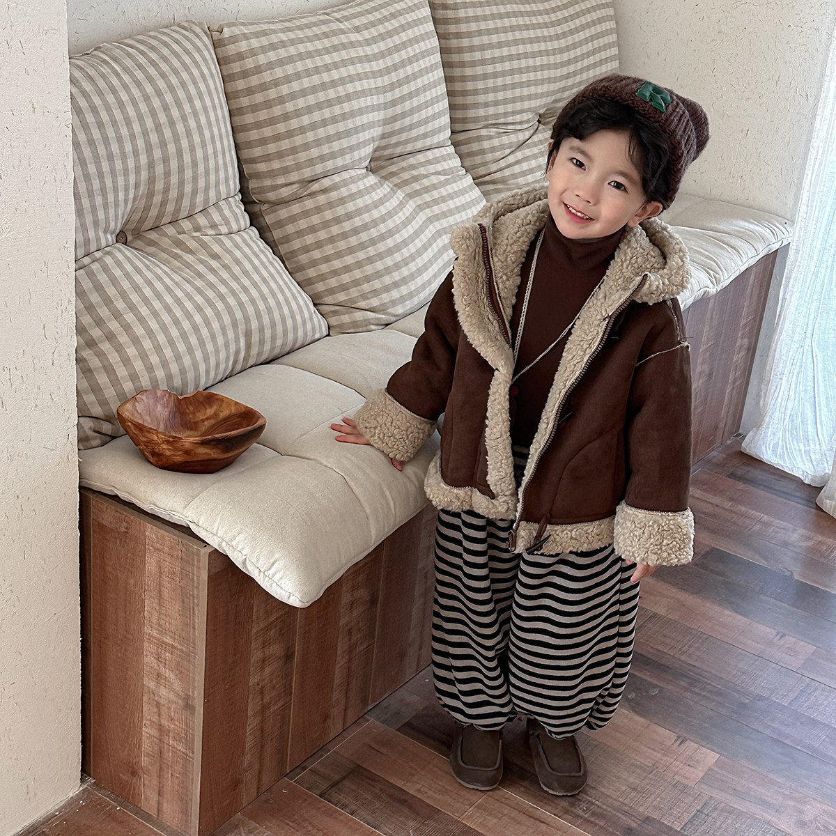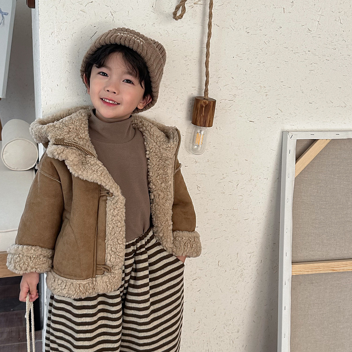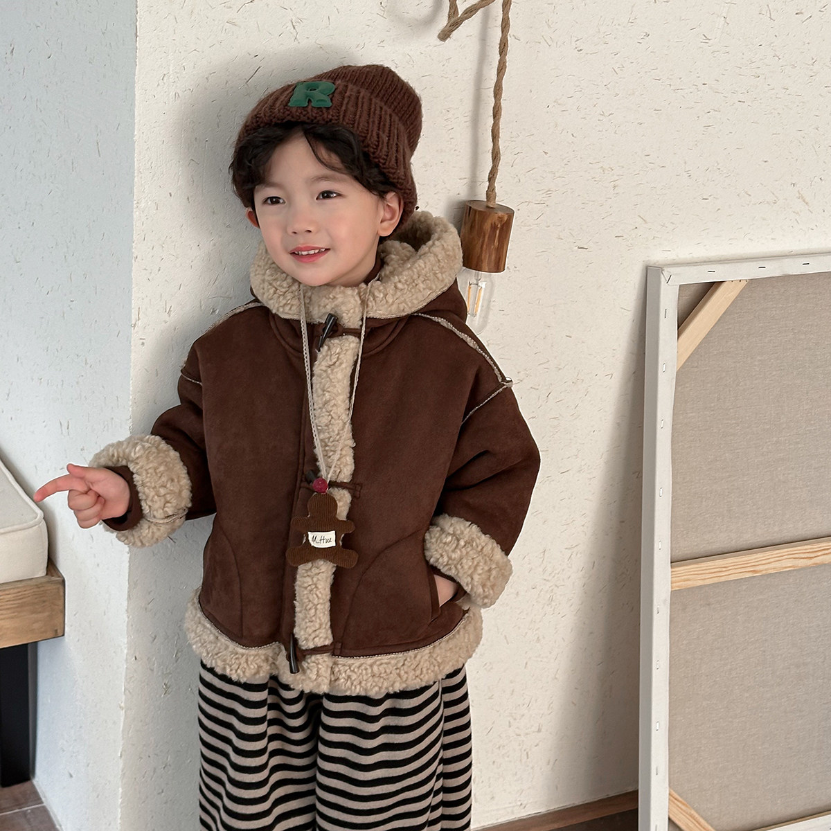 📚 暮晨家新款冬装2025男童皮毛一体连帽外套中小童加厚洋气夹克大衣