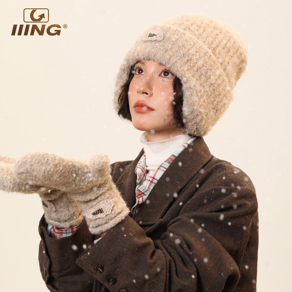 📚 IIING帽控 羊毛护耳针织帽子手套两件套秋冬季保暖显脸小毛线帽女