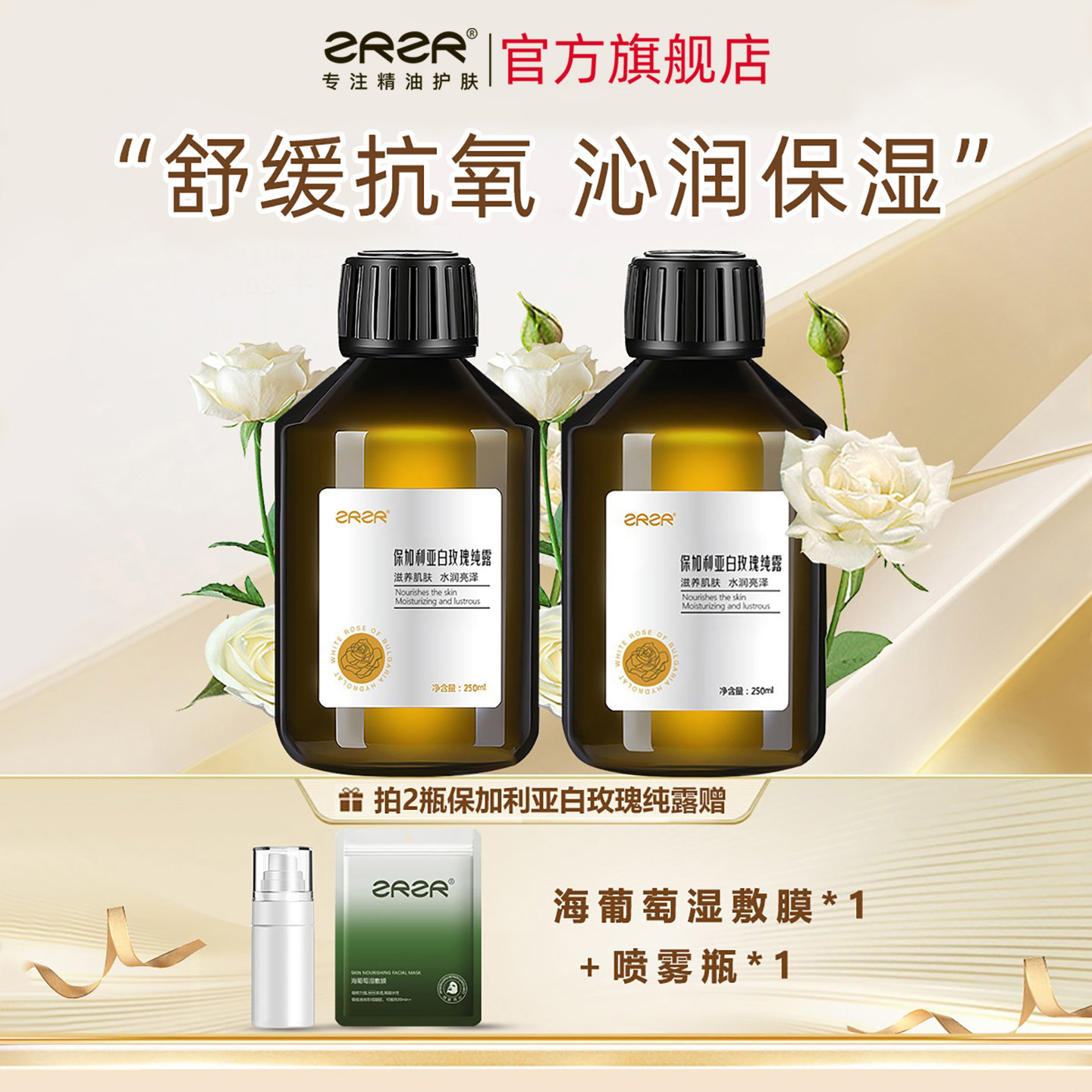📚 ZRZR保加利亚白玫瑰纯露 精油爽肤水 面部湿敷保湿玫瑰花水喷雾