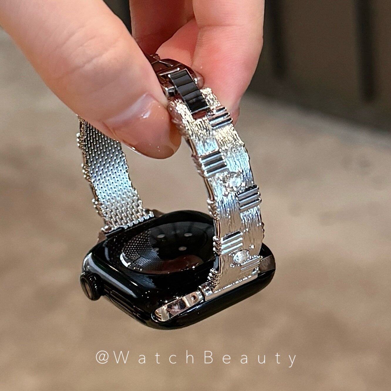 📚 气质感编织格纹手镯款苹果手表表带适用于AppleWatch10iwatch11S9