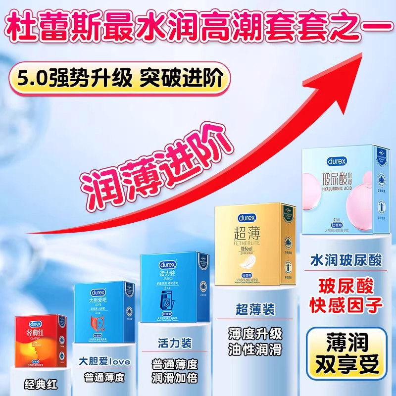 📚 杜蕾斯玻尿酸避孕套超薄正品旗舰店夫妻情趣男用裸入高潮安全套tt